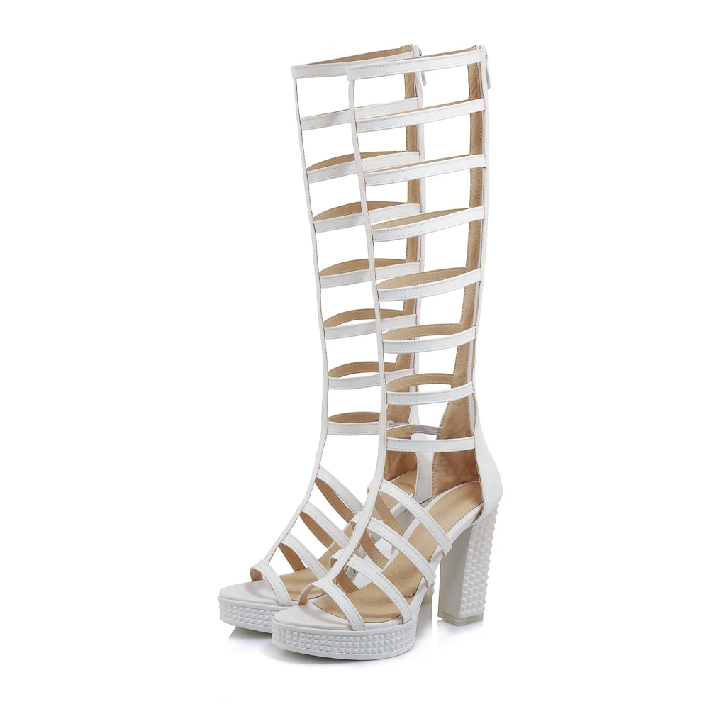 Женские сандалии-гладиаторы, до колена, на высоком каблуке, с вырезами, размеры 42, 43, для лета, 2021