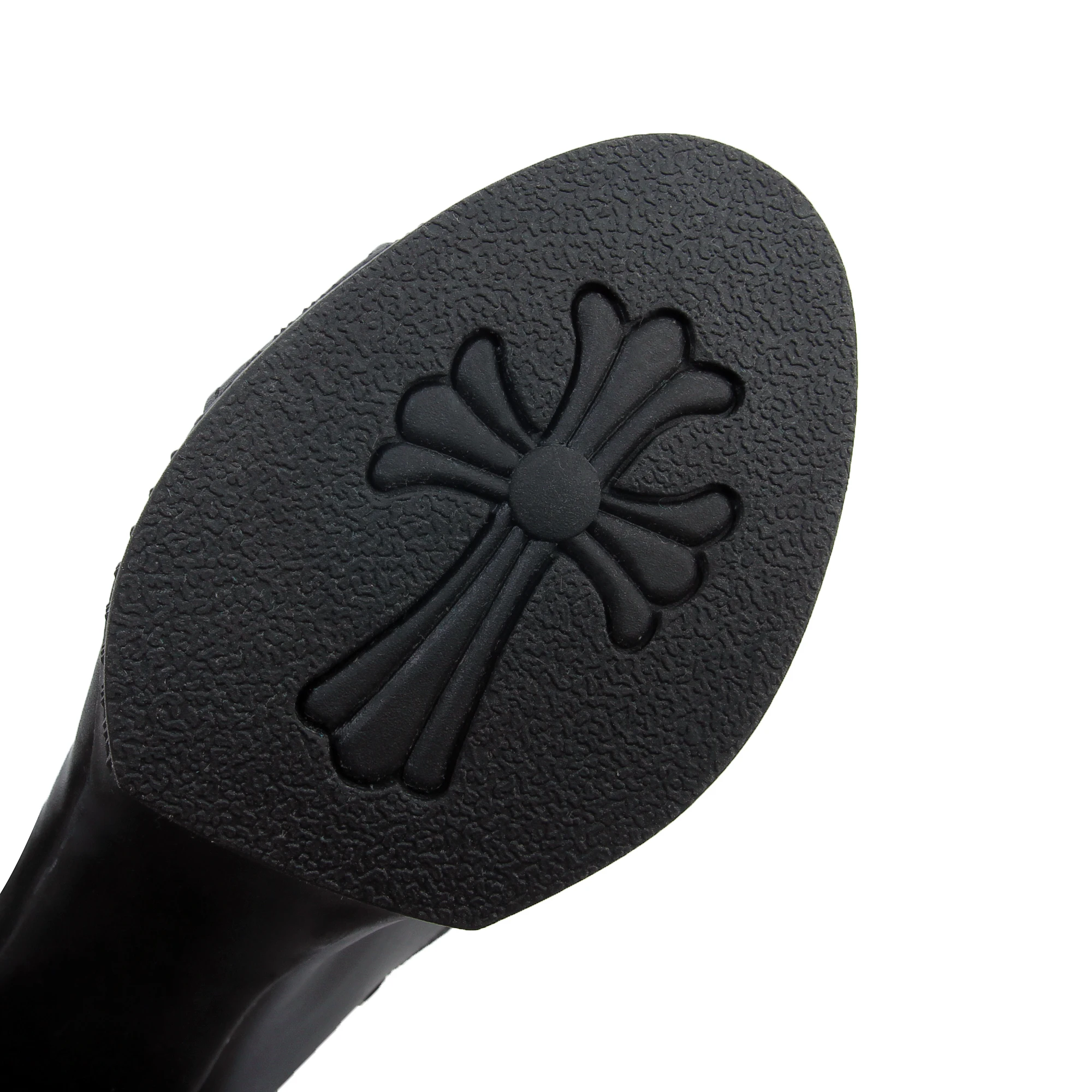 Сапоги женские кожаные, выше колена, с заклепками, на толстом каблу...