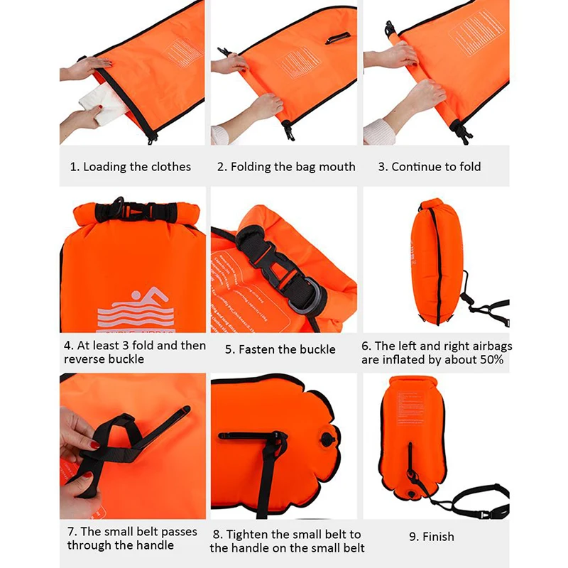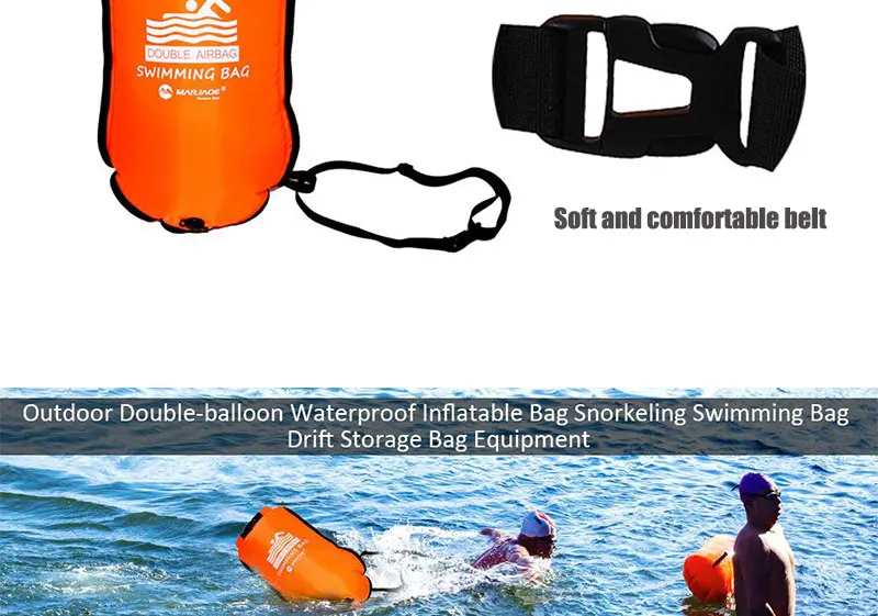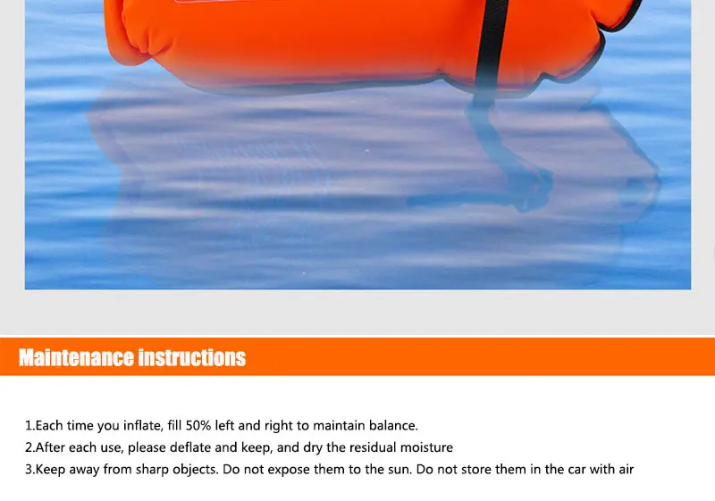 1. Безопасный поплавок с высокой видимостью буй для плавания: безопасный поплавок с высокой видимостью буй для плавания на реке, озере, море и океане в оранжевом цвете с двумя воздушными надувными камерами и двумя ручками для поддержки различных позиций плавания.2. Прочная техническая и прочная ткань: прочная техническая и прочная ткань, которая обеспечивает длительную защиту от воды для ваших вещей. Гарантия того, что он не протекает. Этот буй хорошо регулируется по талии и изготовлен из высококачественной ткани.3. Ультра портативный: открытая вода использует в качестве сухого мешка и безопасного буксировочного поплавка с рулонной верхней застежкой. После герметизации он обеспечивает защиту и защищает личные вещи. Светильник, что делает его ультра портативным. Отлично подходит для плавания, дайвинга и Сноркелинга.4. Встроенная сухая сумка: встроенная сухая сумка с большим отделением для сохранения сухих личных вещей, таких как ключи, удостоверения личности, кредитные карты, деньги и телефоны.5. Качественное обслуживание: если у вас возникли какие-либо вопросы при получении товара, пожалуйста, свяжитесь с нами, и мы решим их для вас в ближайшее время.Параметры:Название: плавательная сумка с двойными подушками безопасностиРазмер: около 36*70 см/14,17 * дюймаМатериал: Высококачественная нейлоновая ткань + экологически чистый ПВХВоздушное сопло: быстрое Надувное соплоПлавучесть: около 10 кгОсобенности: оснащен двойными подушками безопасности, износостойкая и устойчивая к царапинам ткань позволяет хранить предметы. Двойные подушки безопасности, утолщенная надувная Сумка для плавания, поплавок, защита от храпа, водонепроницаемый спасательный круг из ПВХ, предотвращение утопленияТолько для пловцов!Инструкции по уходу1. При надувании каждый раз, пожалуйста, надувайте на 50% влево и вправо, сохраняйте равновесие2. После каждого использования удаляйте и высушите остатки влаги.3. Беречь от острых предметов, не подвергать воздействию солнца, не наполнять и оставлять в машине.Список:Плавательная сумка с двойными подушками безопасности * 1
