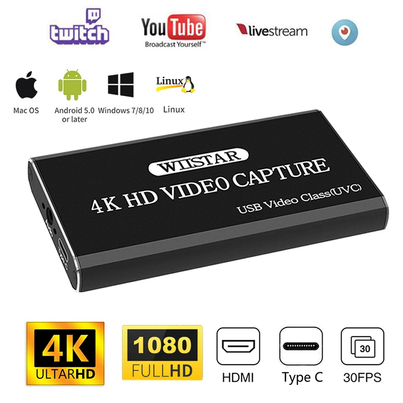 Новая карта захвата аудио-и видеосъемки USB с HDMI на Type C, USB видеозахват с HDMI 4K контур выхода 3,5 мм, аудиовыход для Windows Mac OS Linux