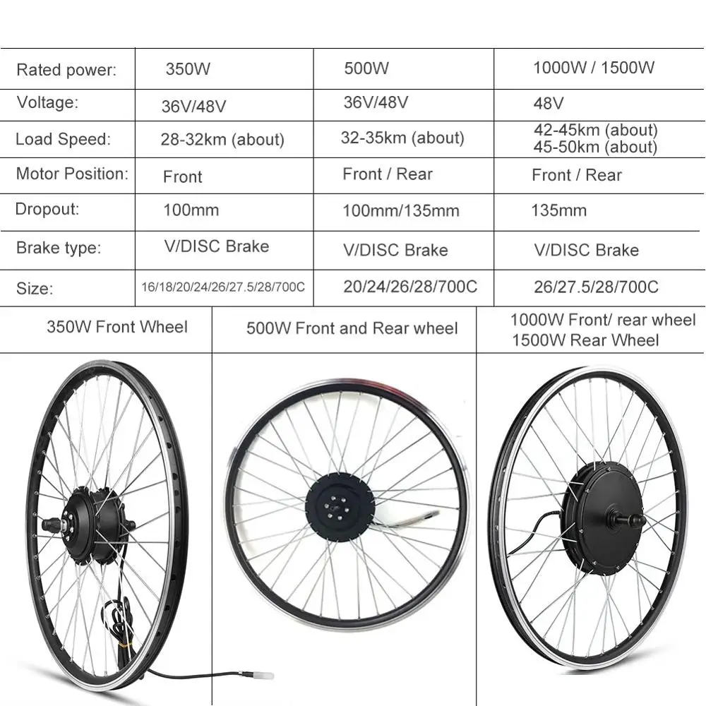Семейное моторное колесо 1500 Вт, 48 В, 500 Вт, 1000 Вт, комплект для электровелосипеда, переднийзадний мотор-ступица 350 Вт, 36 В, мотор для электровелосипеда, 26 дюймов LCD3