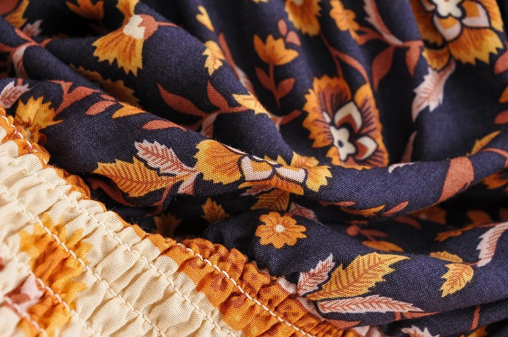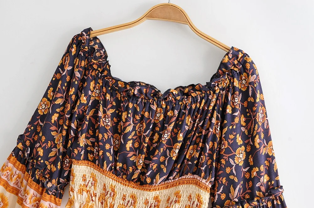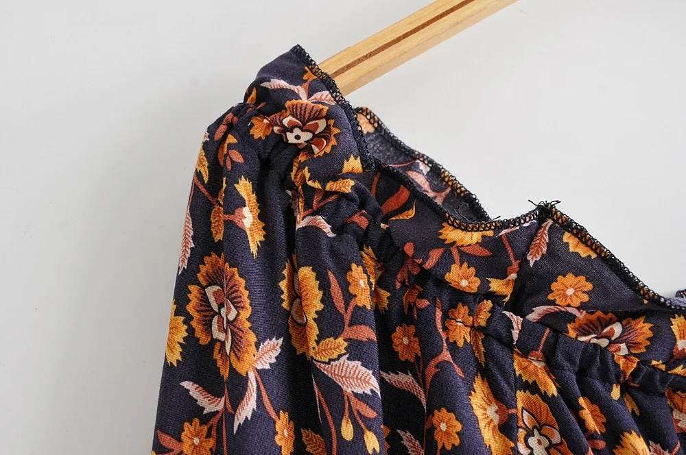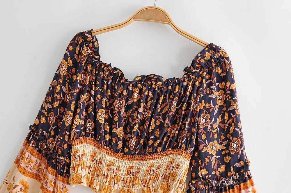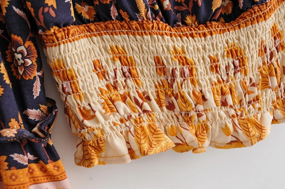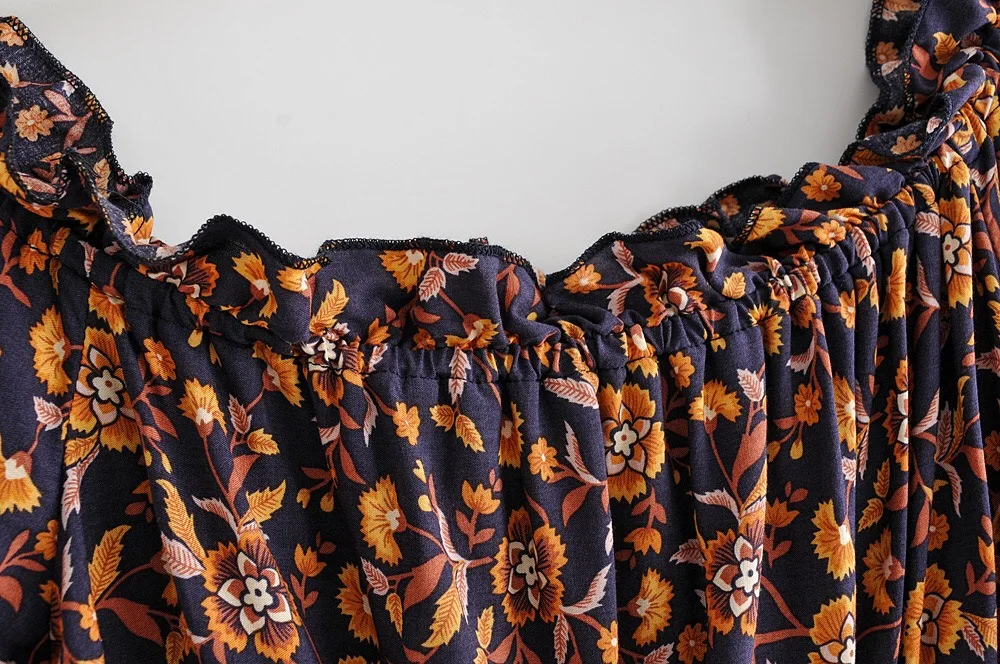 Новый богемный Ruched эластичный Slash шеи цветочный принт пуловер рубашка коричневый 2019 женский Tide лук эластичный пояс брюки комплект из 2 предметов