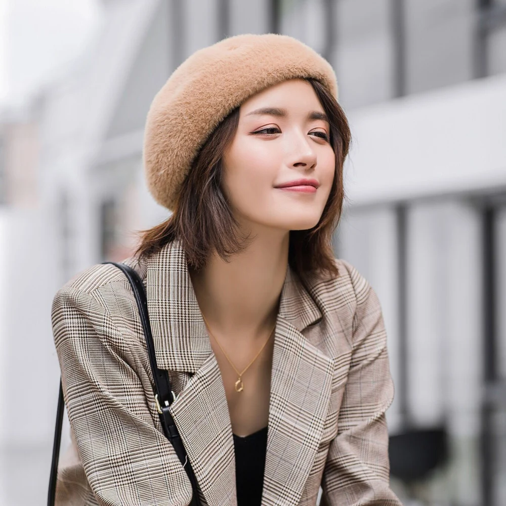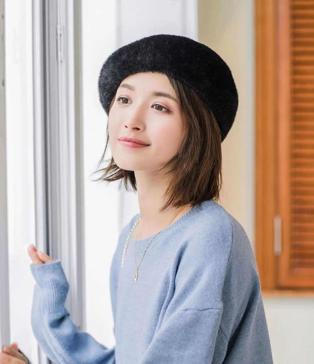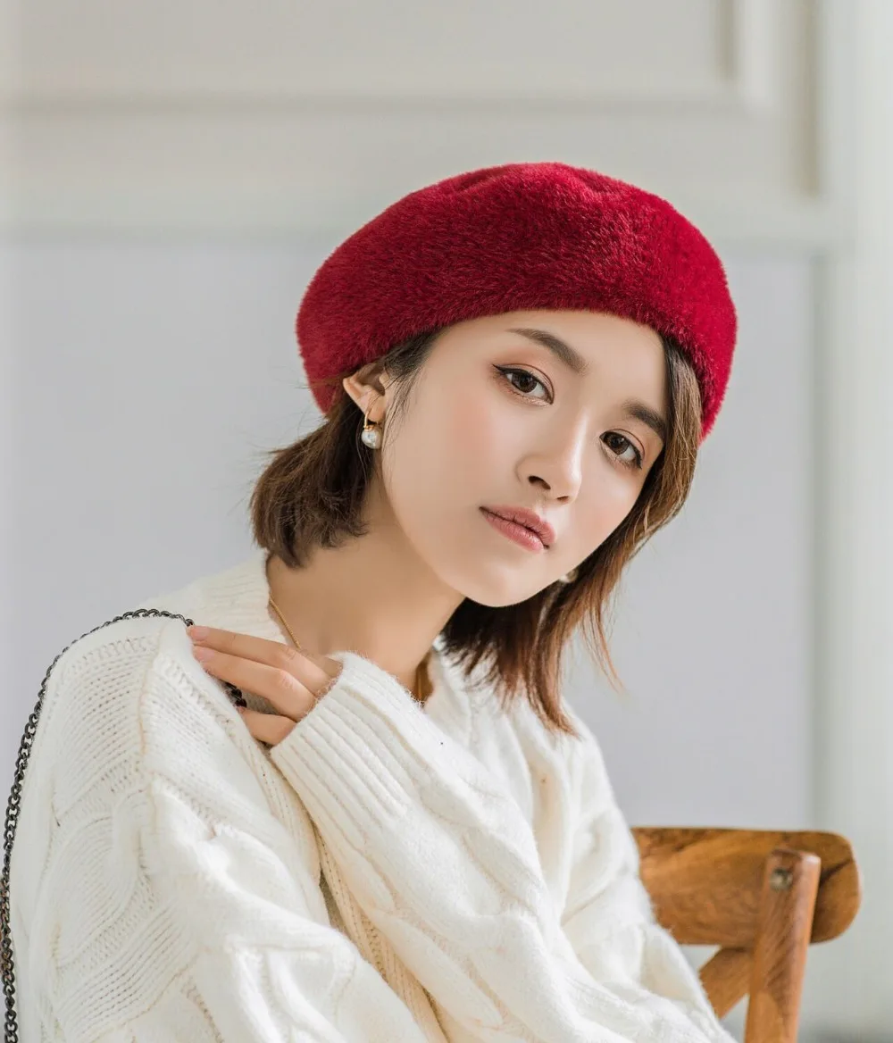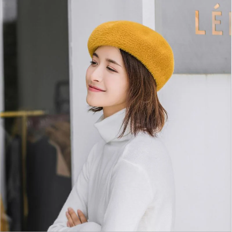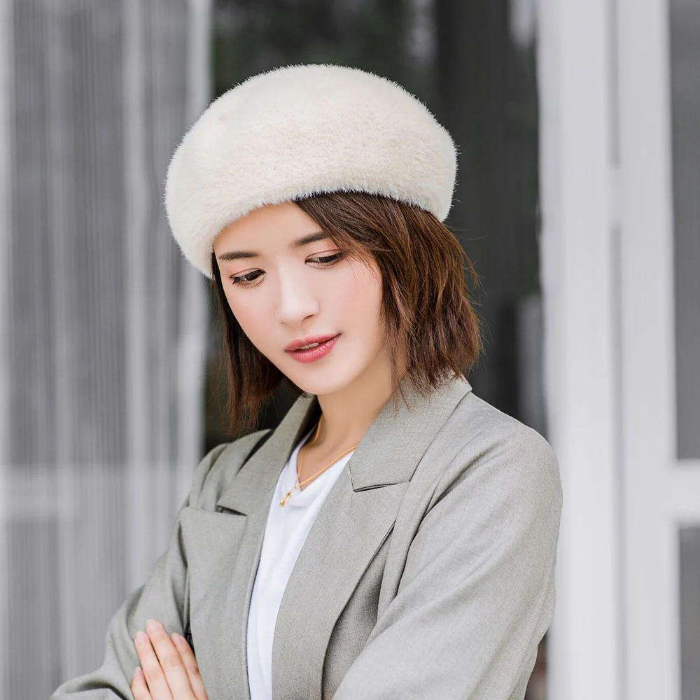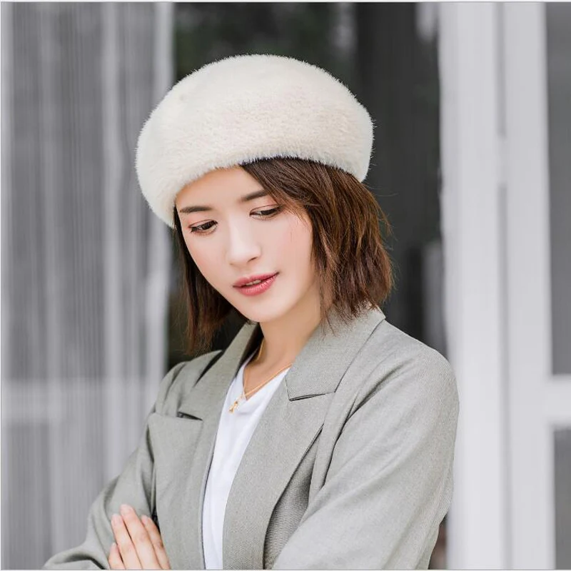 Новинка 2021, высококачественный Женский Зимний берет, вязаный берет из меха норки, женский осенне-зимний теплый берет художника, шапка с тыквой