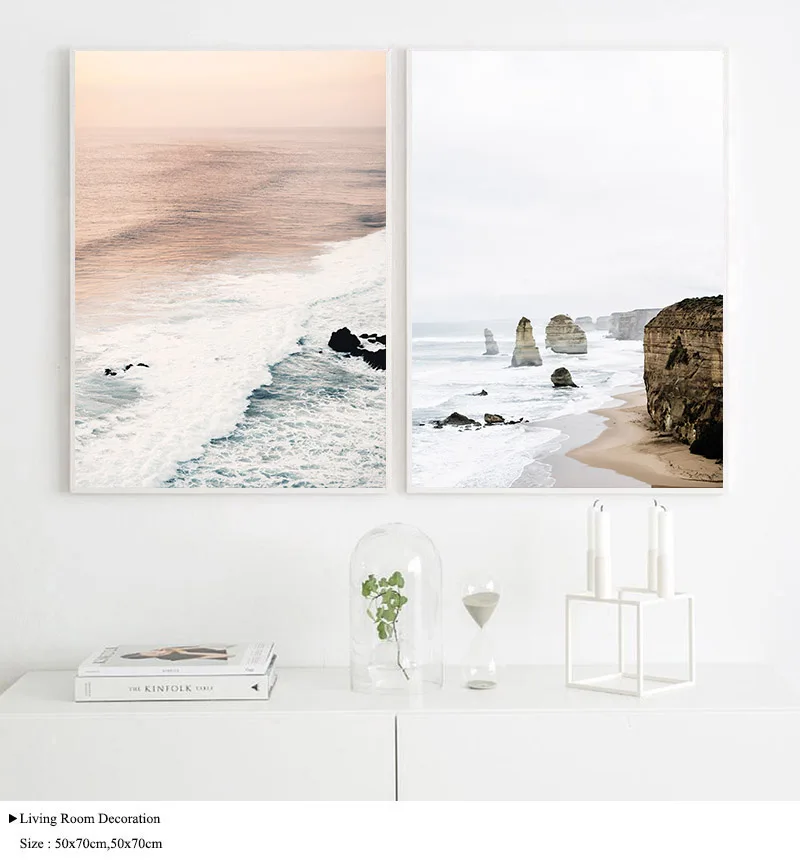 Скандинавский морской пейзаж плакат печать береговая линия море пля...