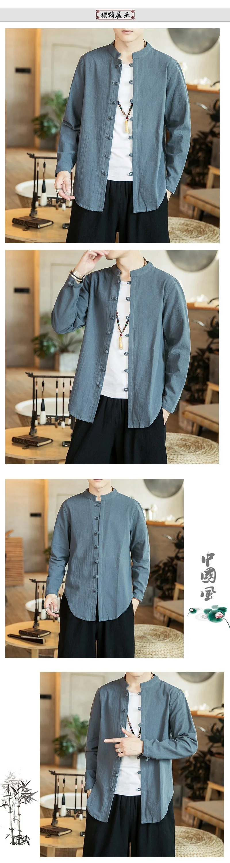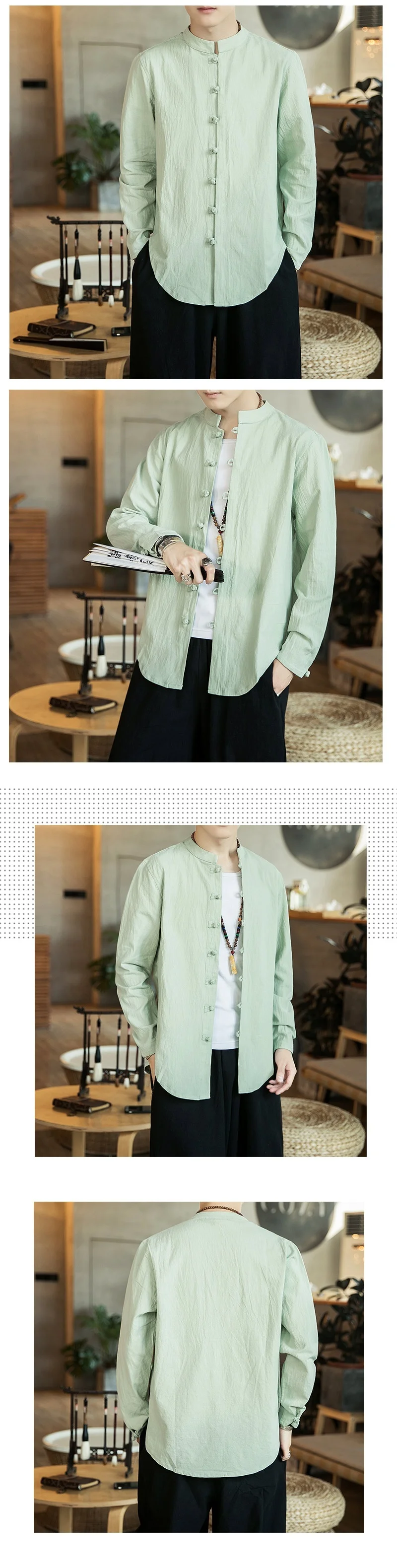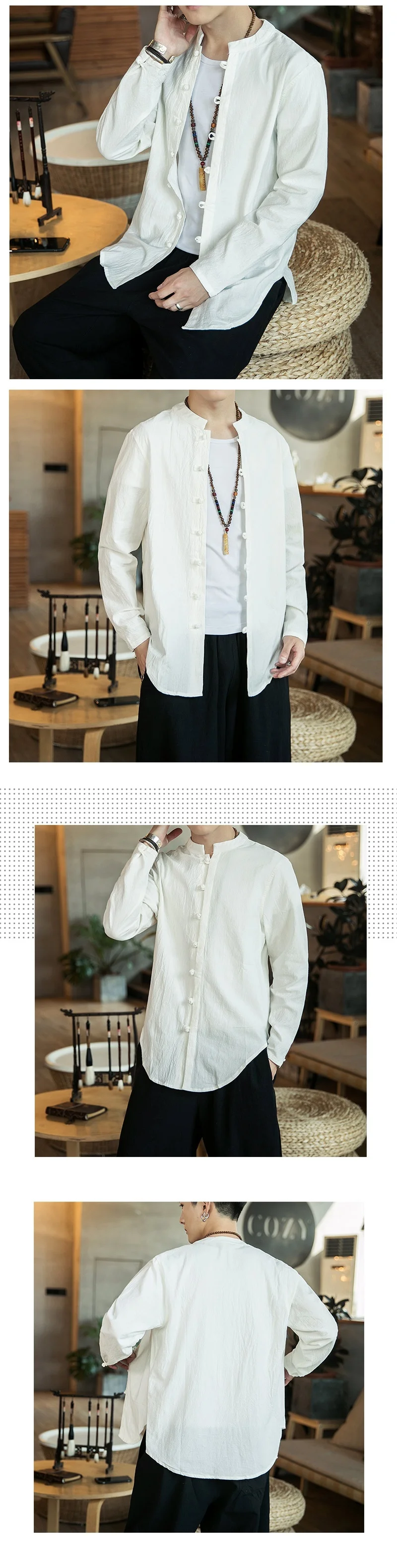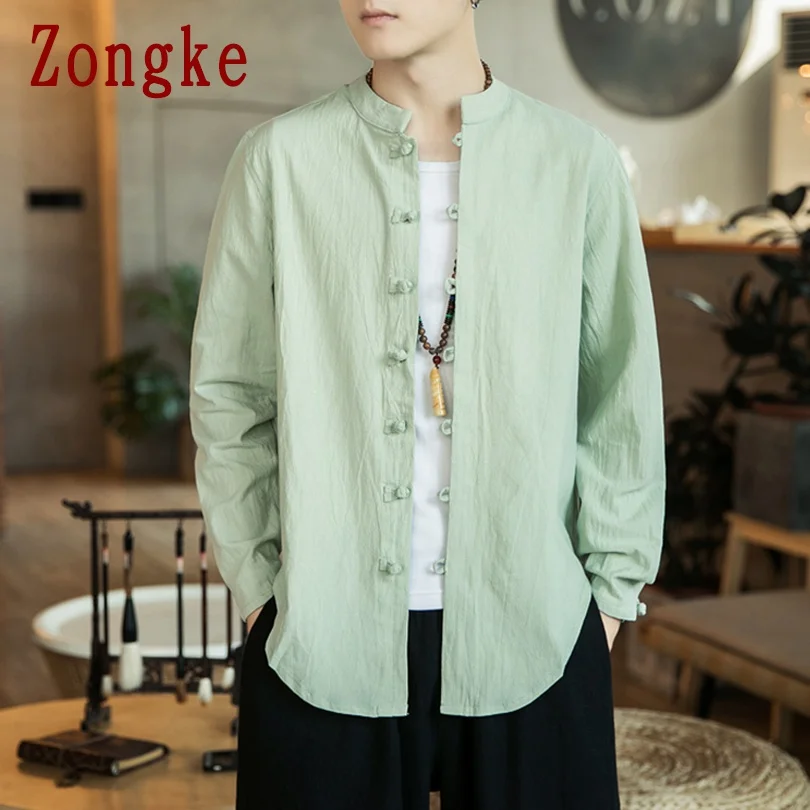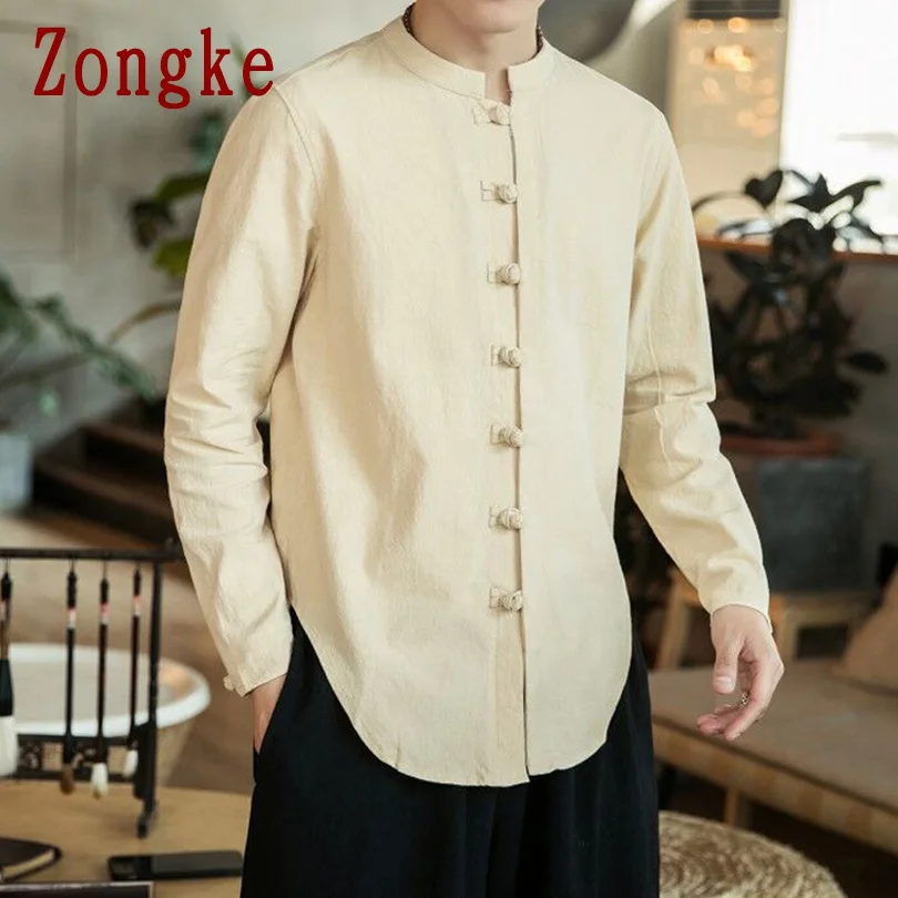 Рубашка Zongke мужская с длинным рукавом, модная блуза в китайском стиле, повседневная приталенная, уличная одежда, однотонная, 5XL, 2022