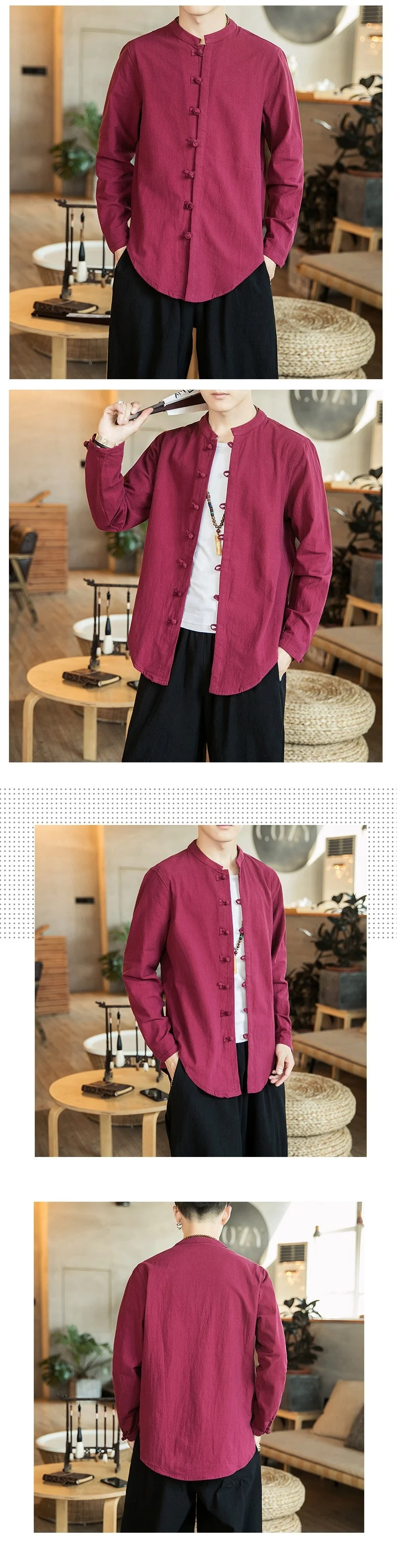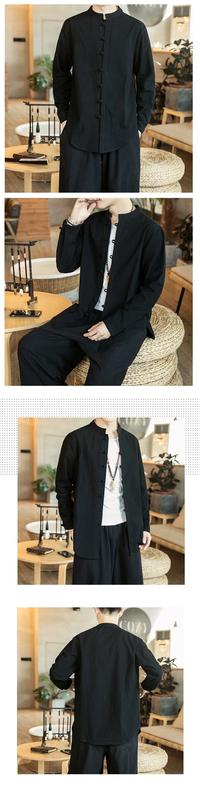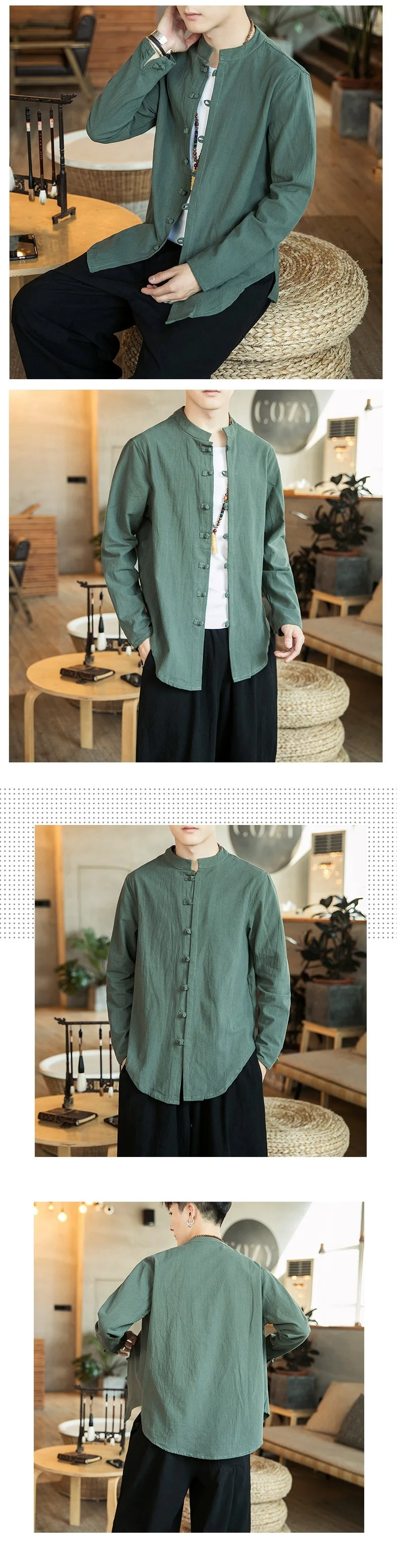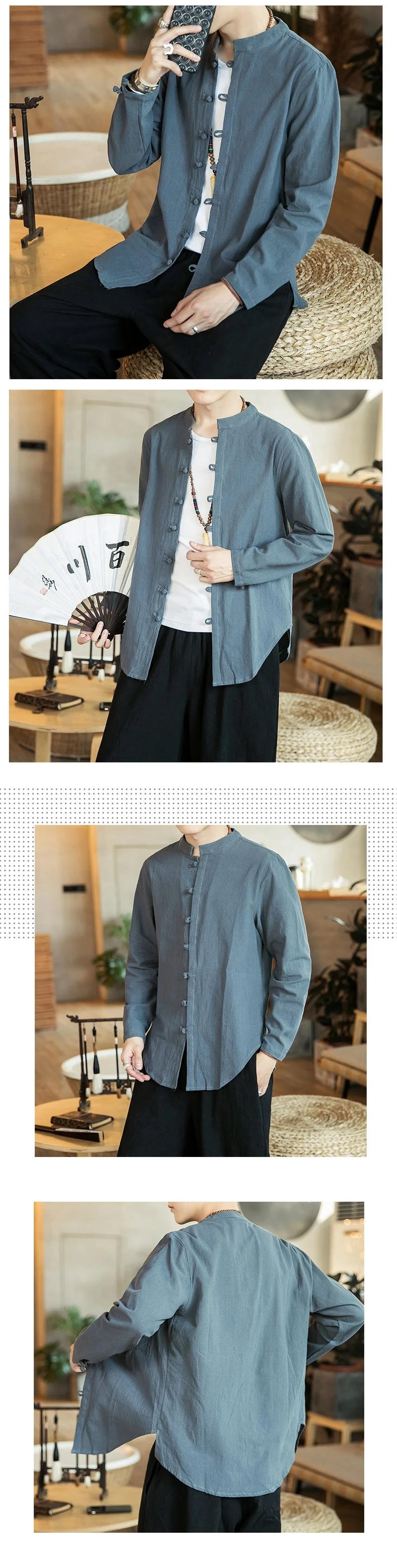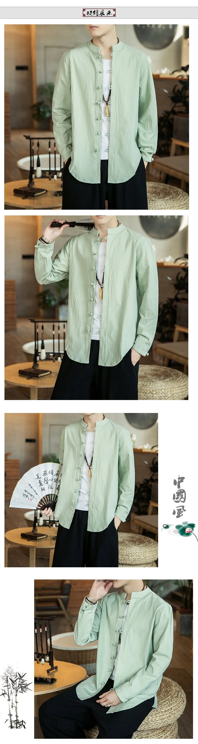 Рубашка Zongke мужская с длинным рукавом, модная блуза в китайском стиле, повседневная приталенная, уличная одежда, однотонная, 5XL, 2022