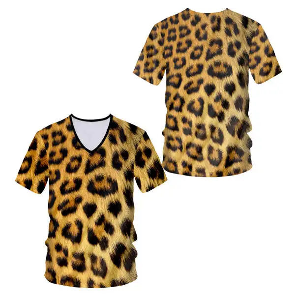 Пользовательские футболки Роскошные 3d текстуры животных печати футболки для мужчин и женщин сексуальная глубокий v-образный Вырез Летняя уличная футболка хип хоп Рэп летние топы S-7XL