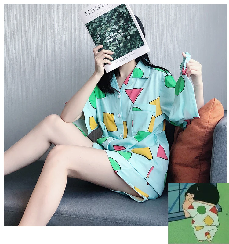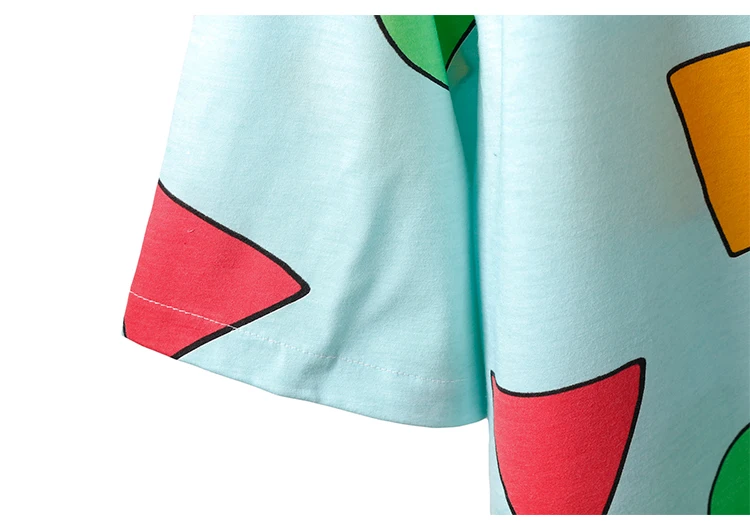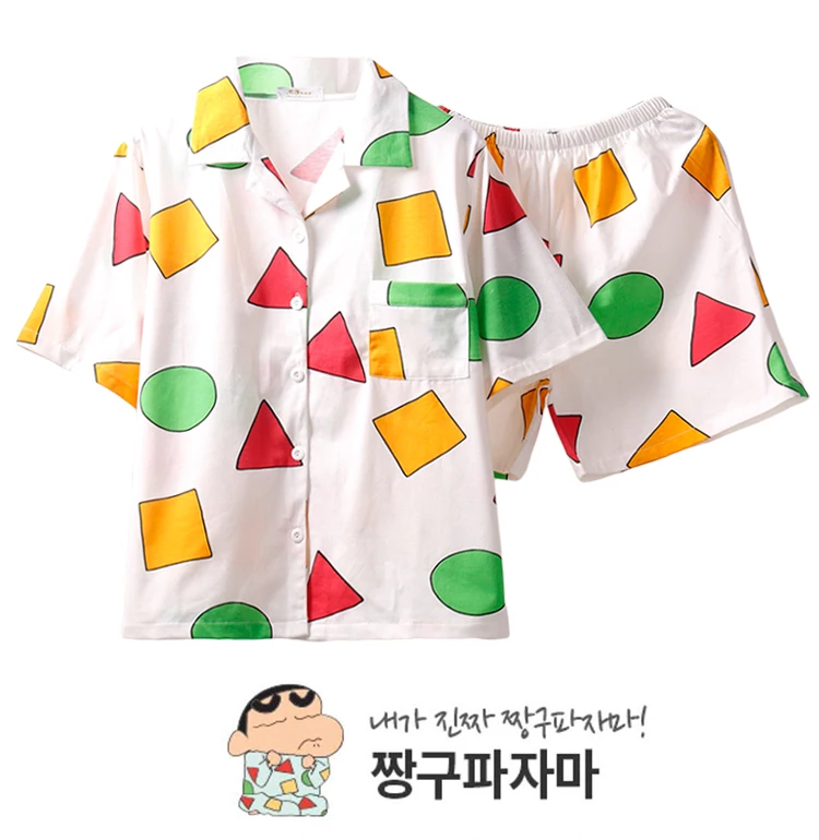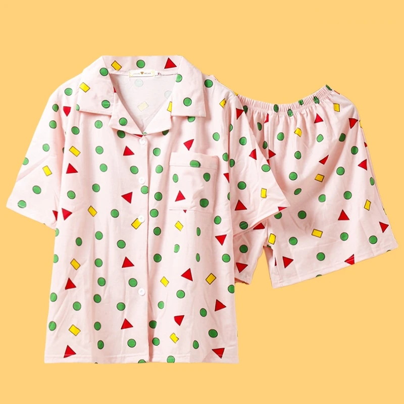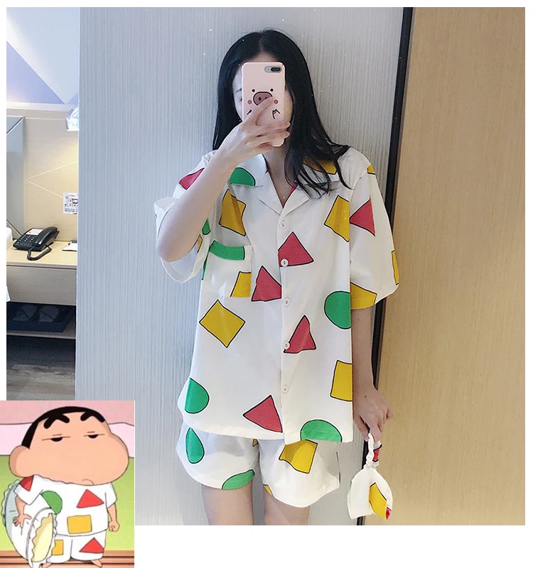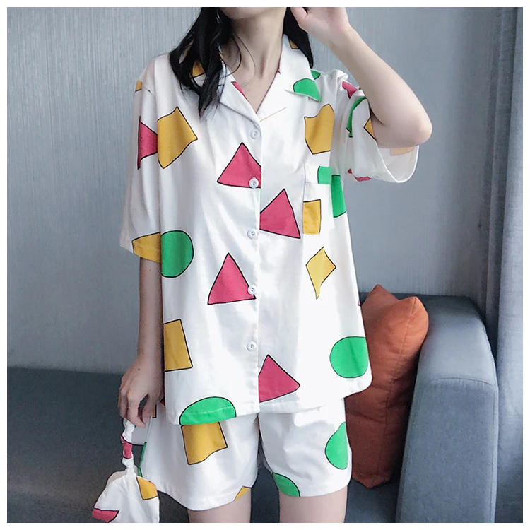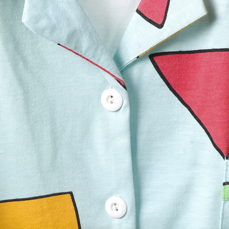 Комплект пижамный мужскойженский из 3 предметов, милый топ с геометрическим принтом, короткий рукав, шорты, эластичная талия и свободная повязка на глаза, S98191