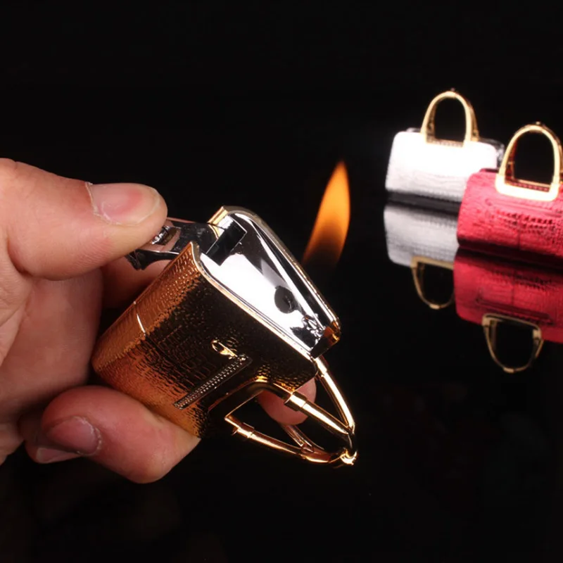 Креативная газовая зажигалка, заправляемая Бутановая газовая зажигалка, женская сумка с украшением, зажигалка для курильщиков