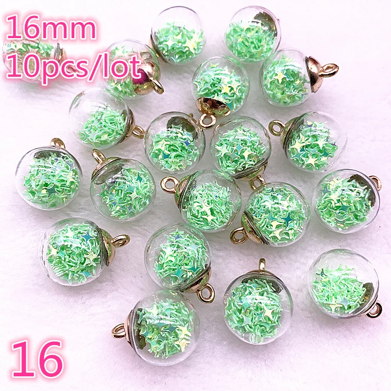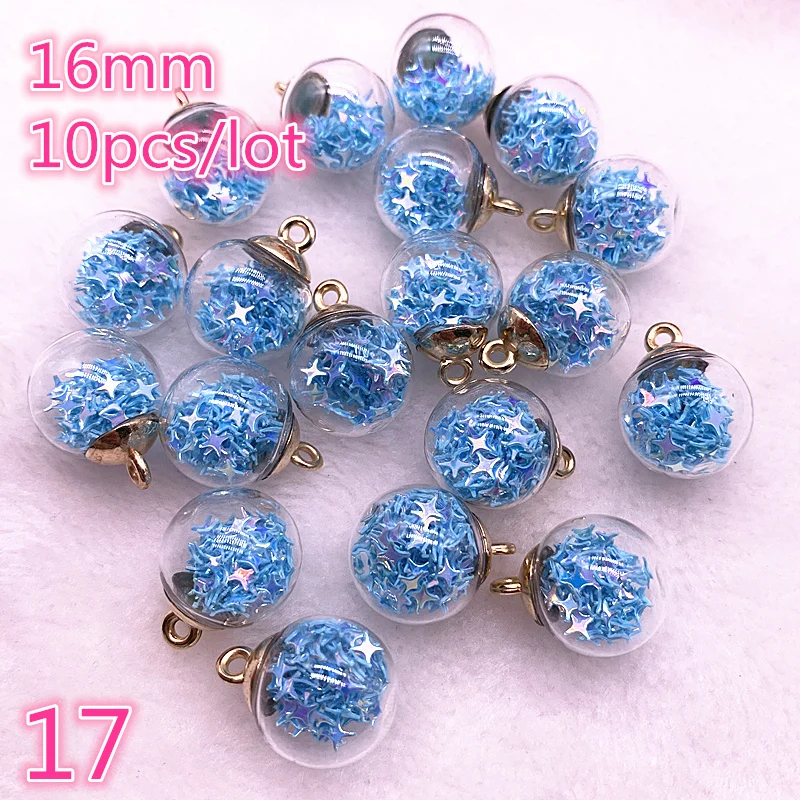 Оптовая продажа, разноцветный прозрачный шар, стеклянная звезда, круглые кулоны и подвески, аксессуары для волос, ювелирные изделия, подвески, серьги #13, 16 мм