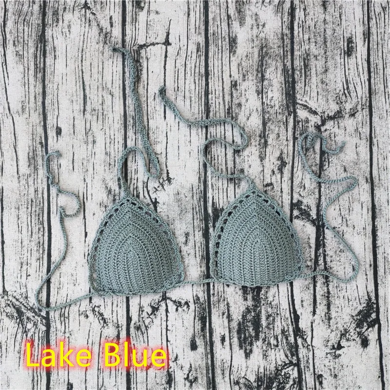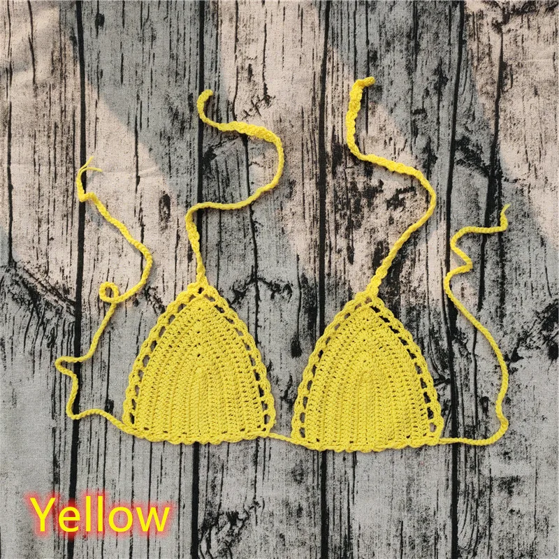 Вязаные пляжные топы-бикини, 11 цветов, пляжный топ с пуш-ап или подкладкой, женский купальник