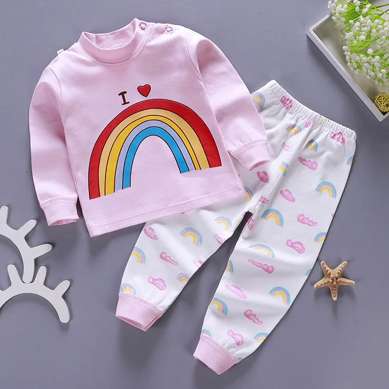 Пижамный комплект унисекс, хлопковый пижамный комплект для маленьких мальчиков и девочек, Осень-зима, мягкая одежда для сна, Одежда для новорожденных, От 6 месяцев до 5 лет