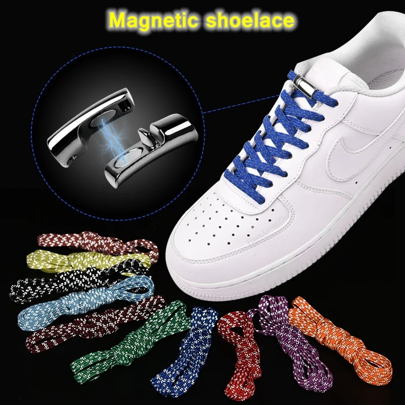 Новые эластичные Светоотражающие магнитные шнурки, быстро фиксирующие шнурки для обуви без галстука, спортивные туфли со шнурками для взрослых и детей