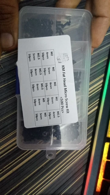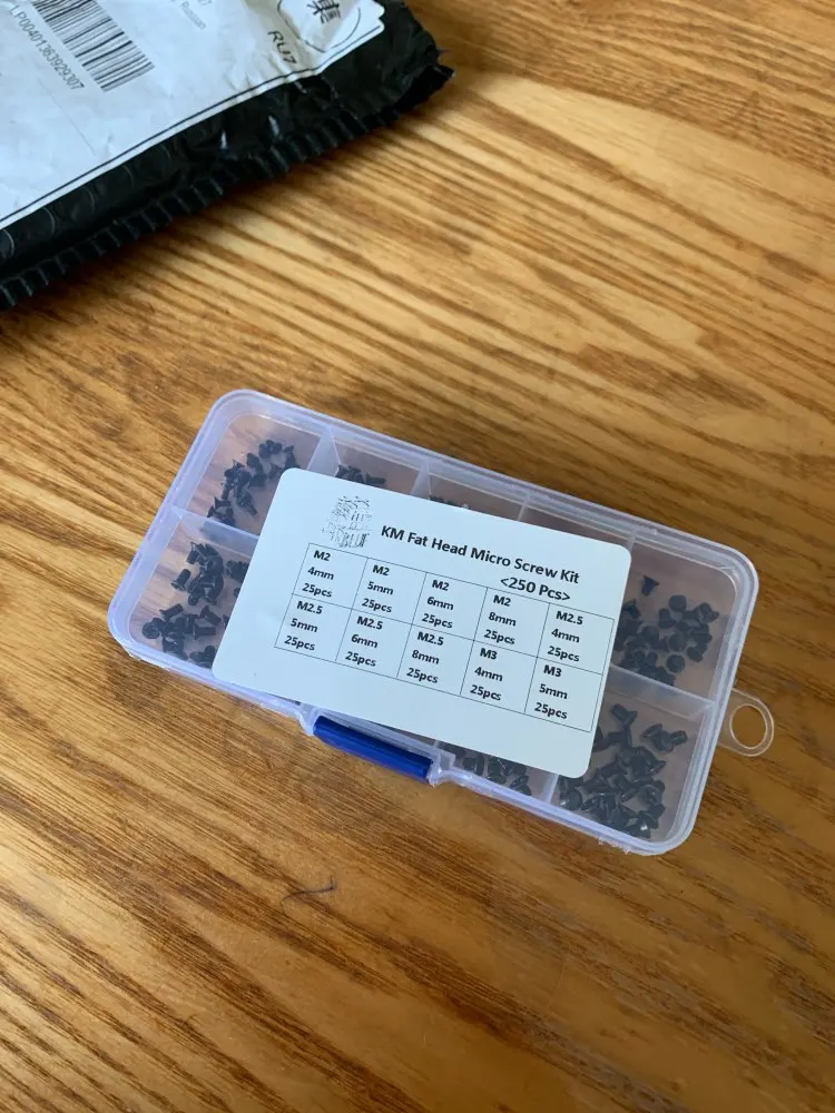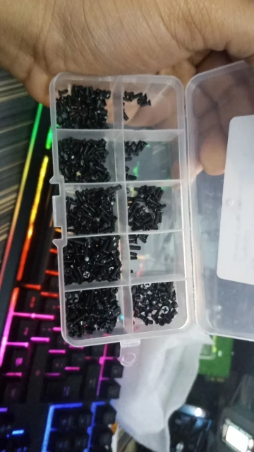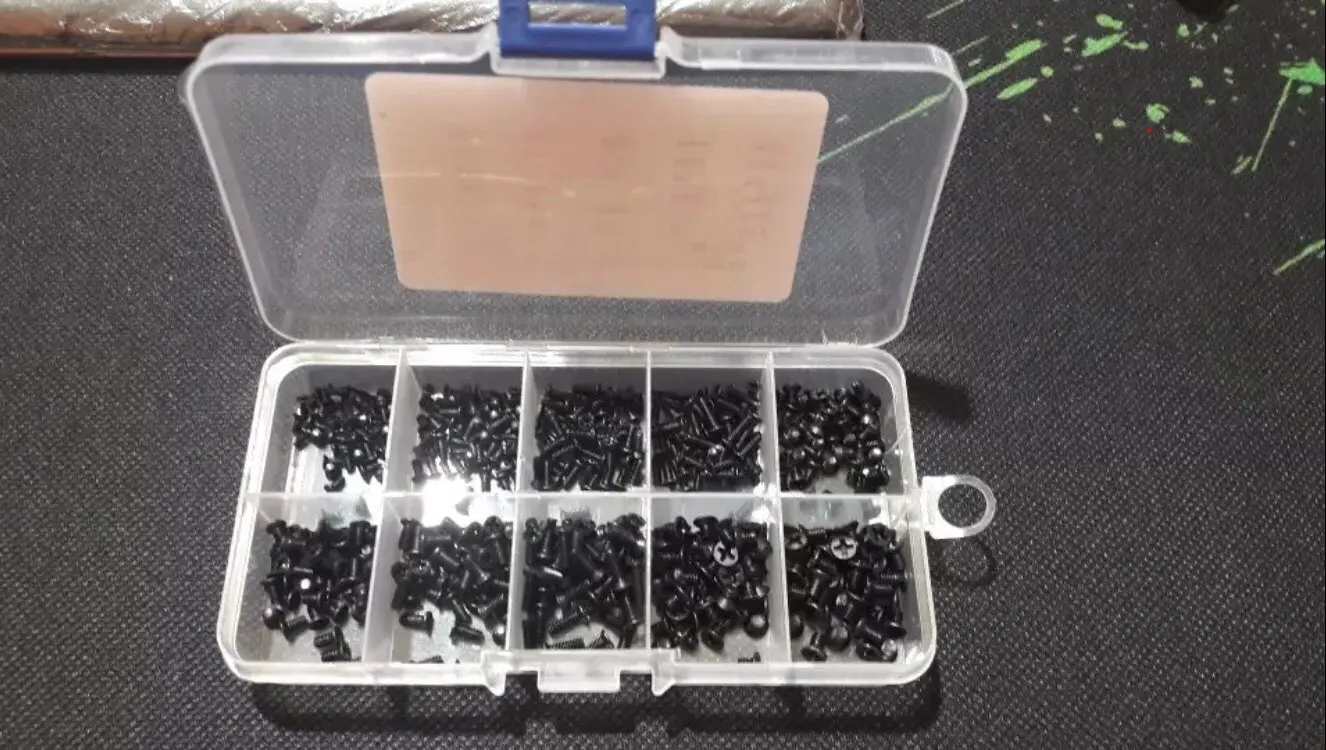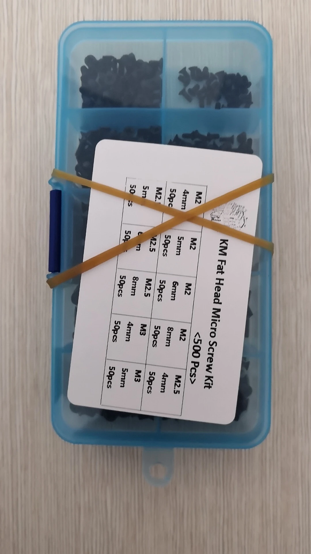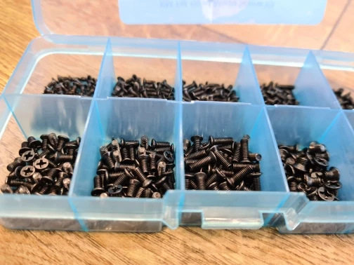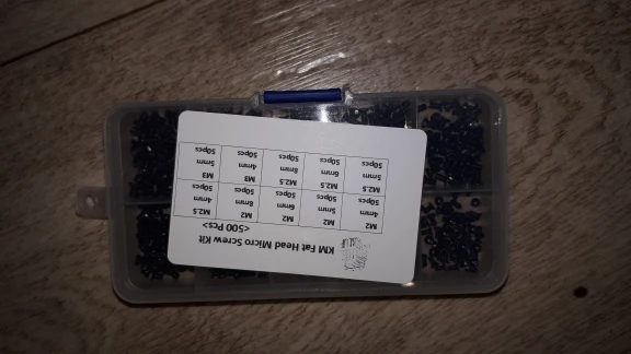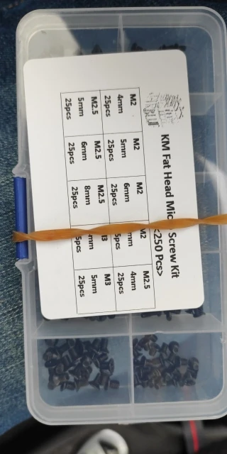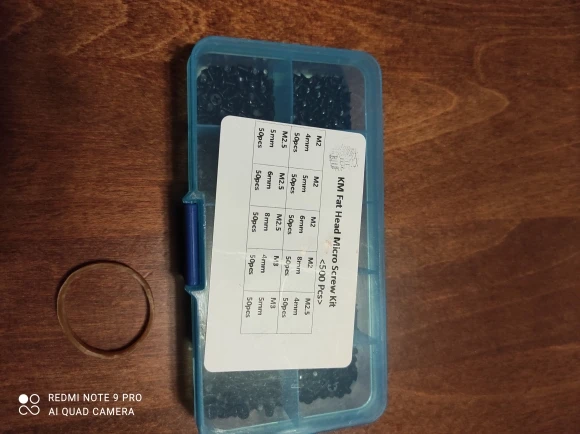Винты супер! Продавец не поскупился, положил каждого размера не по 25 шт, а на несколько штук больше. А вот крышка коробочки хлипкая. Винты, что поменьше, могут перемещаться по ячейкам, если коробочку переворачивать. Но это не критично.