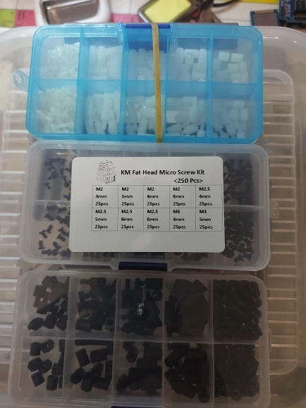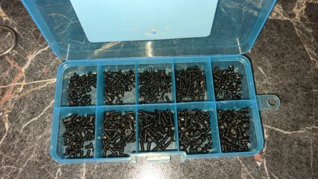 Пришли как обычно за месяц. На почте как обычно... не нашли посылку по адресу и фамилии. Принес номер отправления - сразу выдали. По результатам строевого смотра - в каждой ячейке больше 50 болтиков. Все из-за того что в другом заказе от этого же продовца не досчитался одной гайки.