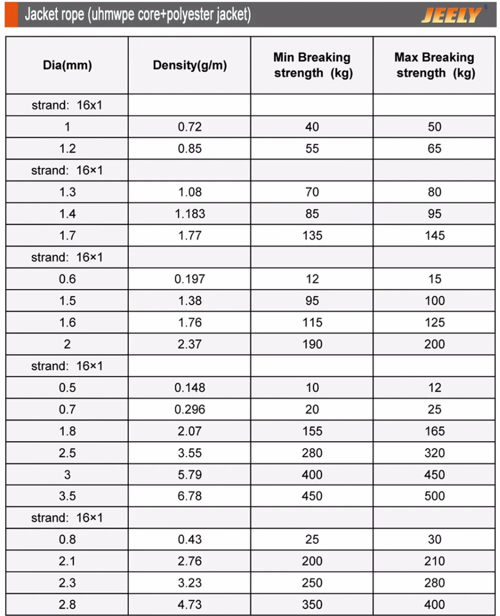 JEELY 1,7 мм 50 м UHMWPE ядро с полиэфирной курткой линии