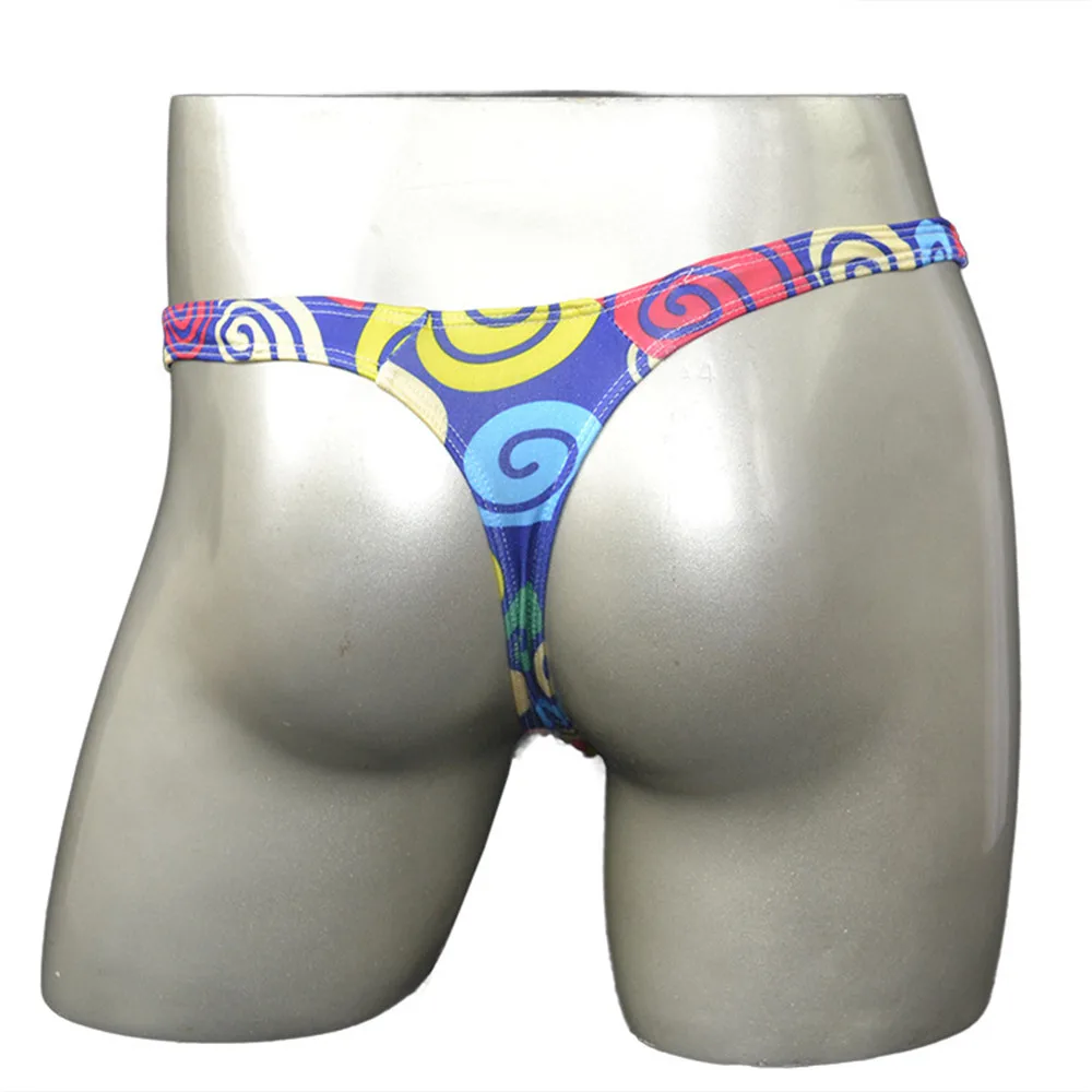 Новинка мужские бикини, купальник, сексуальные мужские стринги с круглым принтом, большой карман для пениса нижнее белье, стринги для увеличения члена