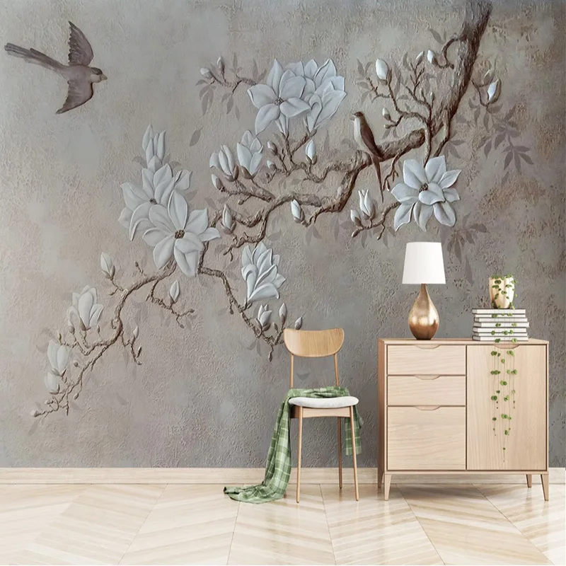 Настенная 3D картина на заказ, ветви магнолии, настенная живопись для гостиной, телевизора, дивана, спальни, европейский стиль, винтажная настенная бумага, 3D декор