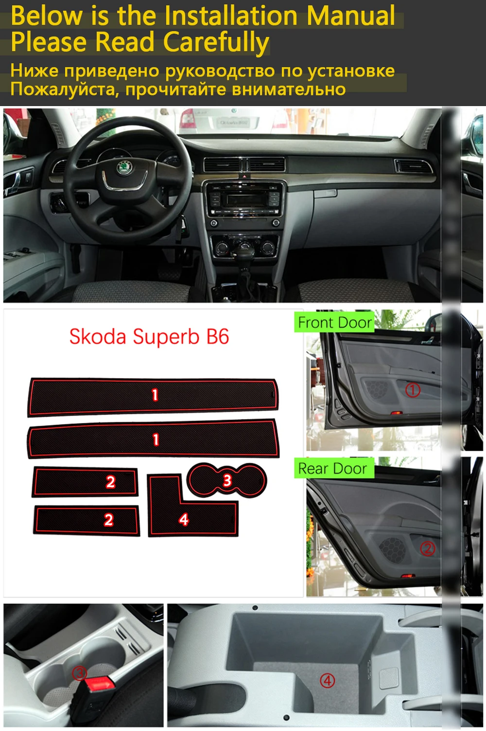 Противоскользящий резиновый коврик для чашки, дверной паз, коврик для Skoda Superb 2 B6 MK2 Comib 2009 2015 2010 2012 2014, аксессуары, коврик для телефона