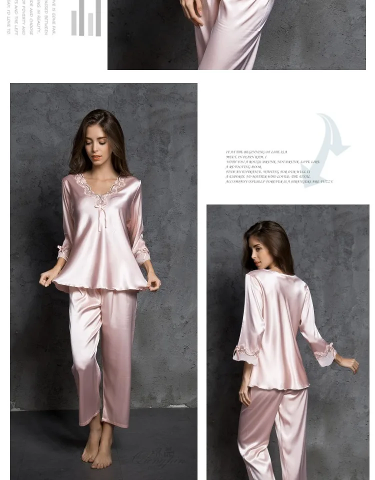 Женская шелковая атласная пижама, пижамный комплект, одежда для сна...