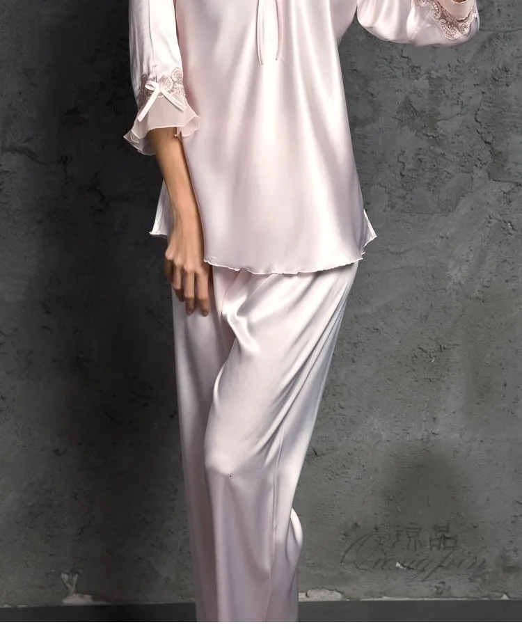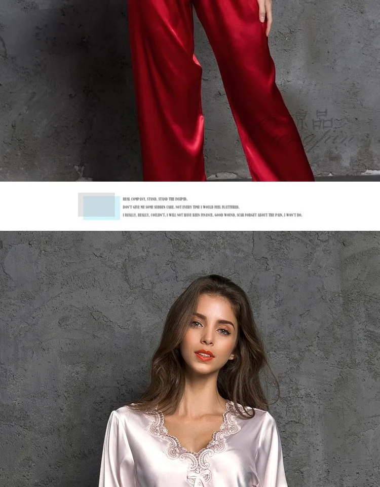 Пижама женская, женский брючный костюм, шелковая пижама с длинным р...