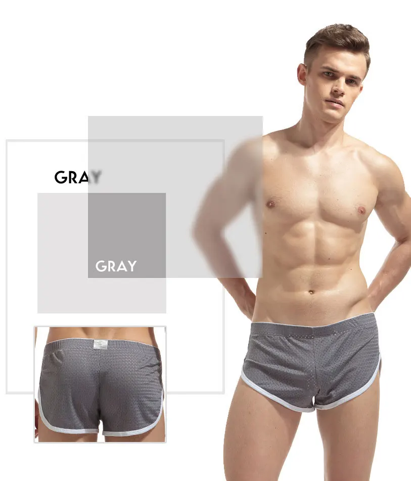 Мужские сетчатые шорты с Боковым Разрезом для бодибилдинга, тренировок, тренажерного зала, бега, мужская спортивная одежда, мягкое удобное дышащее Ночное нижнее белье