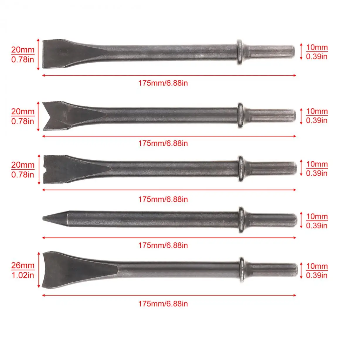 Ударная головка с твердым стальным долотом, 5 шт.лот, пневматический инструмент для резкиудаления ржавчины, 45 #