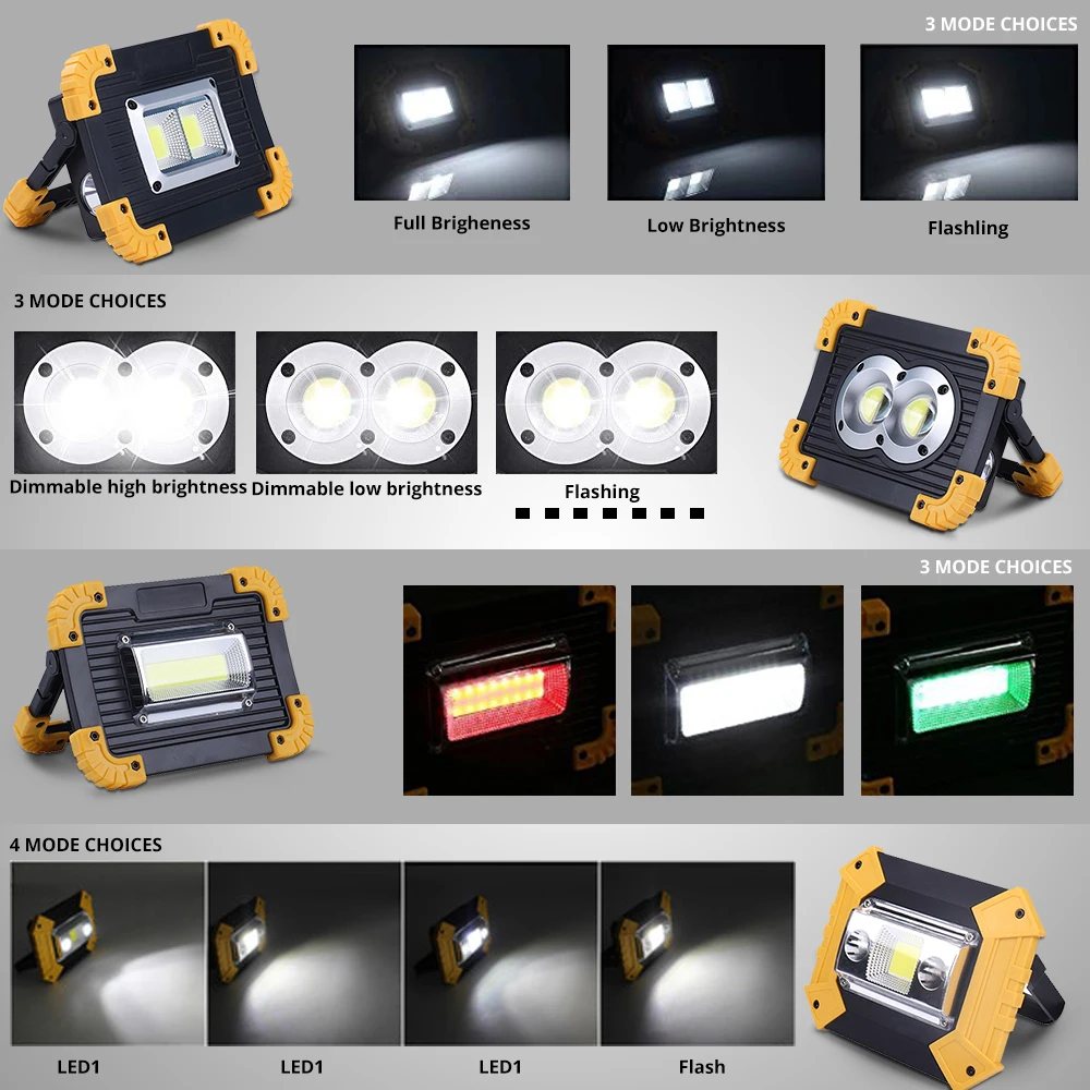 Самый яркий общий свет из аналогичных светильников, поскольку прожекторы и общий свет в одну сторону направлены. кроме того за направленный свет отвечают 2 светодиода, а не один. Он меньше размером и солиднее. Из недостатков, тут нет индикации уровня заряда аккумуляторов.