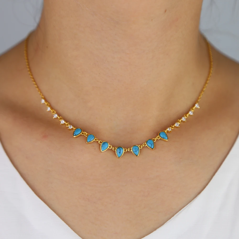 Женское Ожерелье-чокер, украшенное блестящими камнями, ювелирные изделия в форме слезы, с голубым опалом, с фианитом, золотого цвета, чокер короткое ожерелье