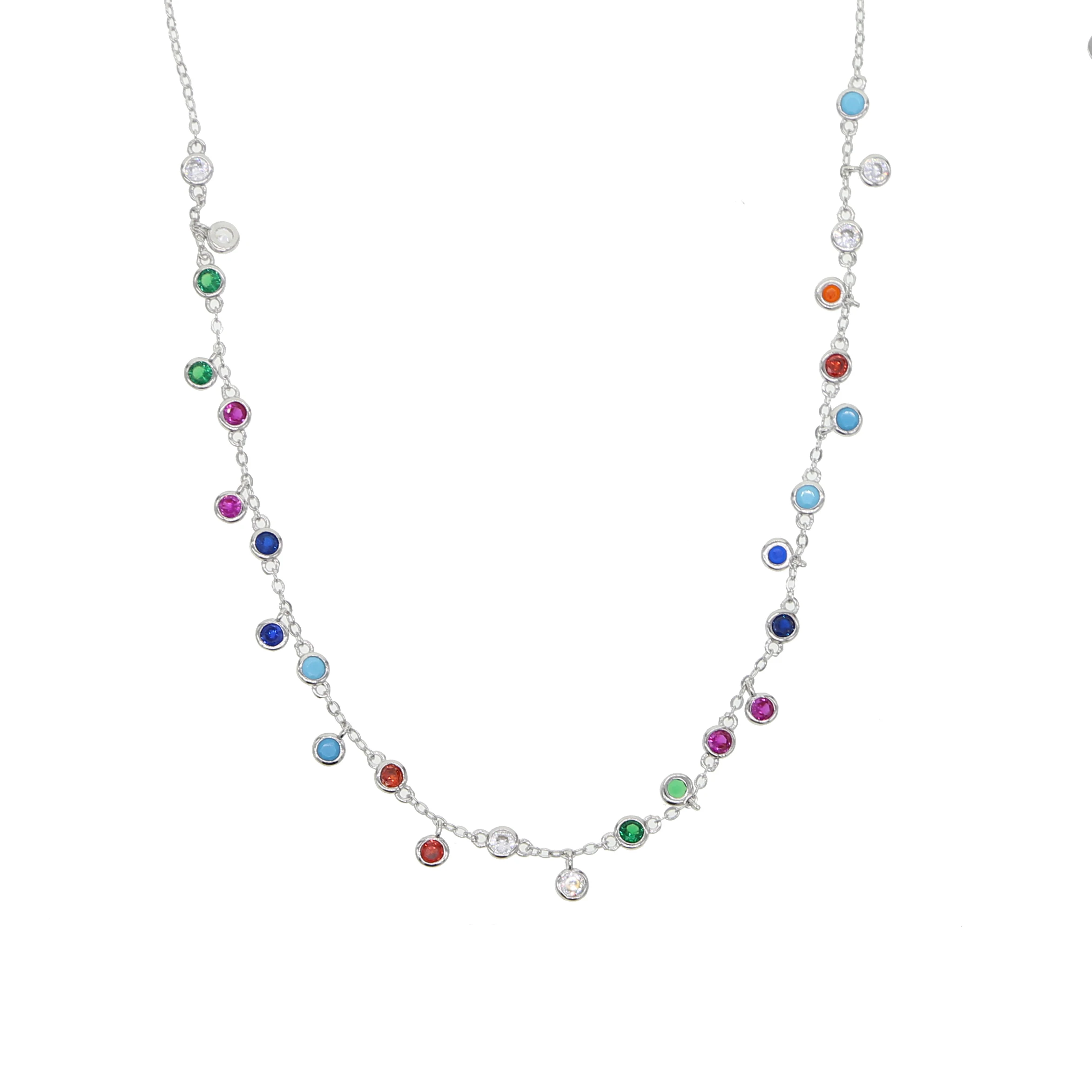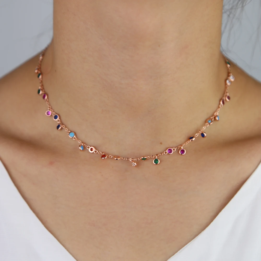 Посеребренное розовое золото модное женское Радужное ювелирное изделие 32 + 8 см фианит подвеска цепочка с разноцветным камнем Чокер Ожерелье