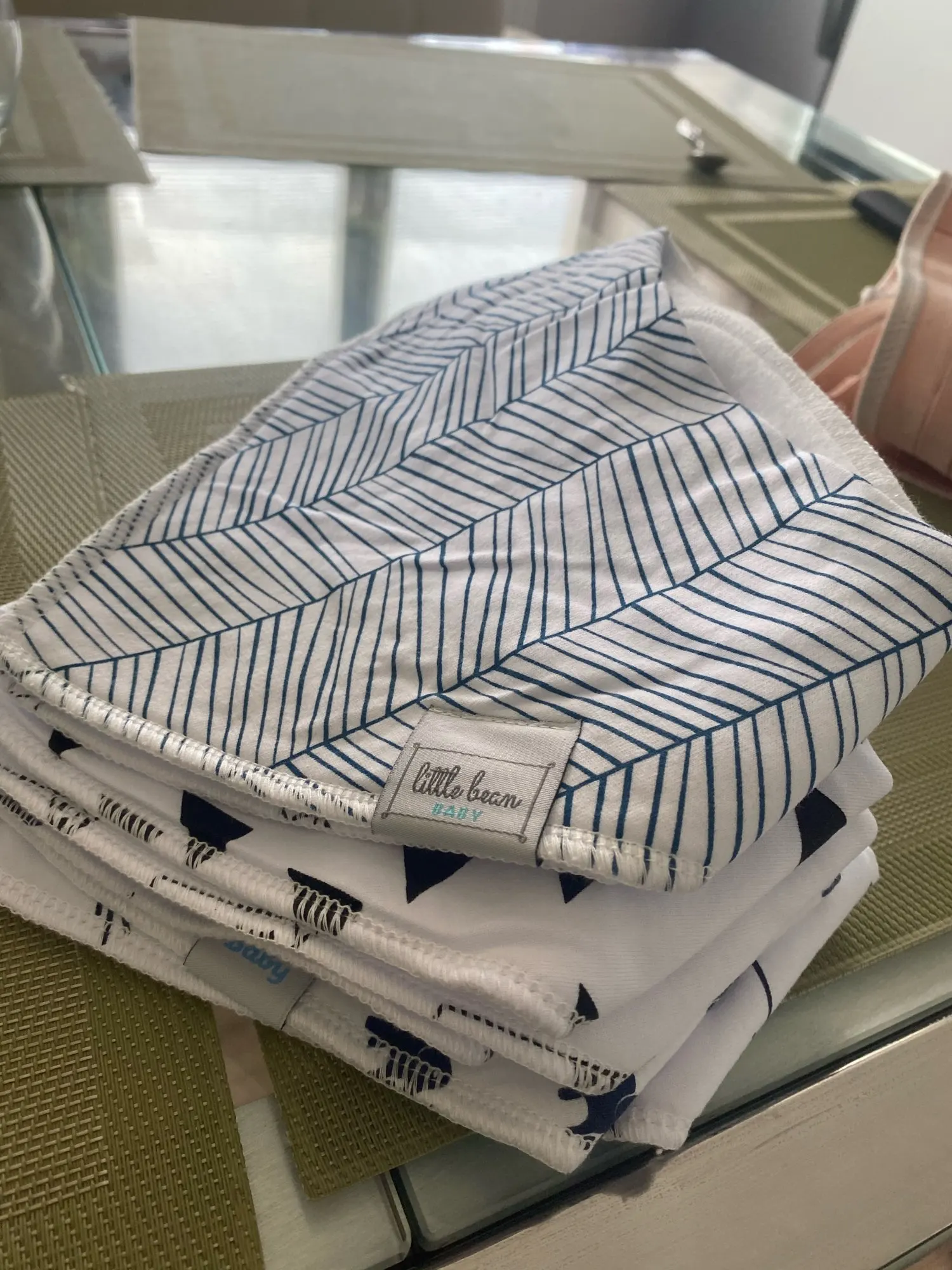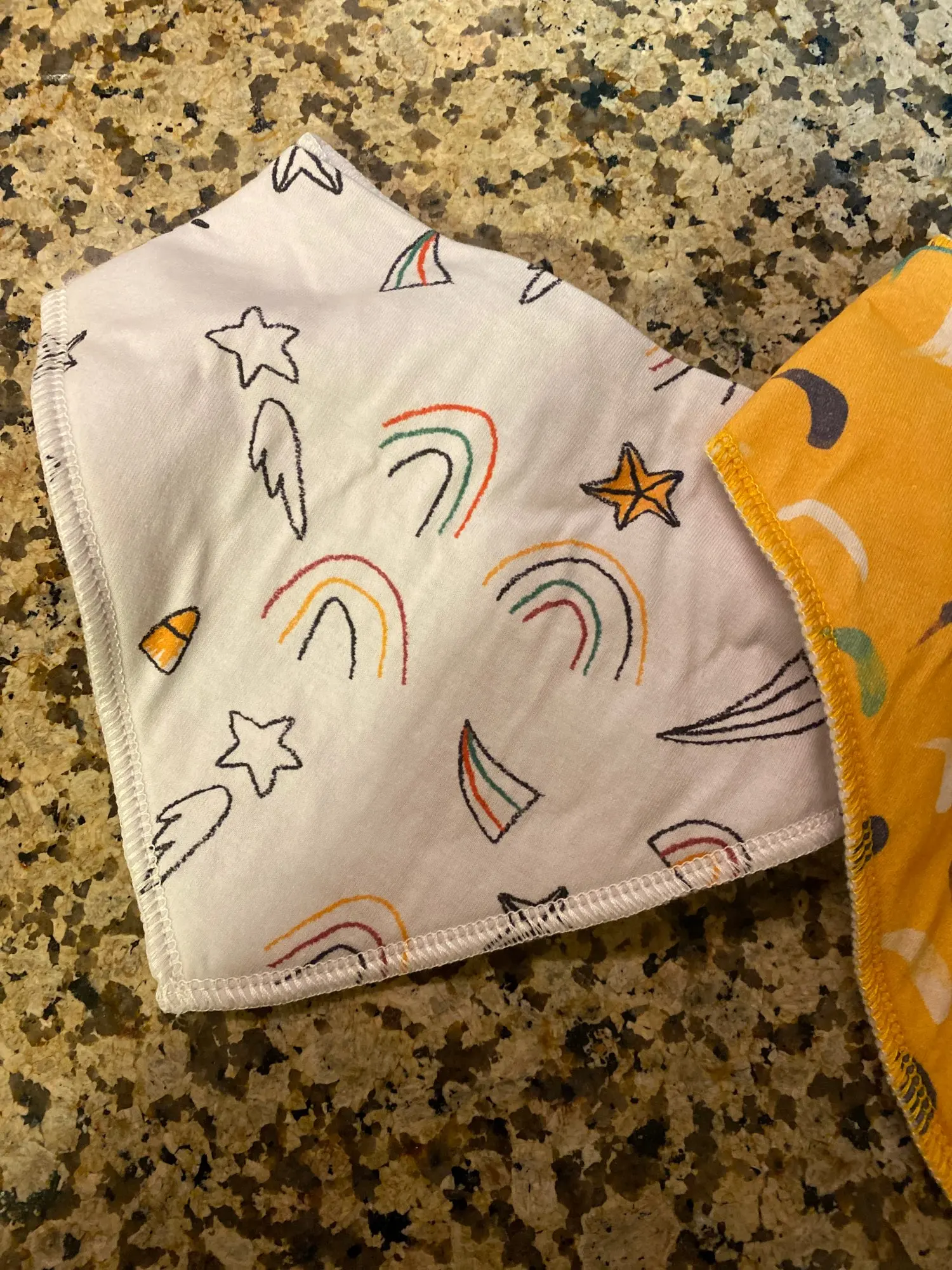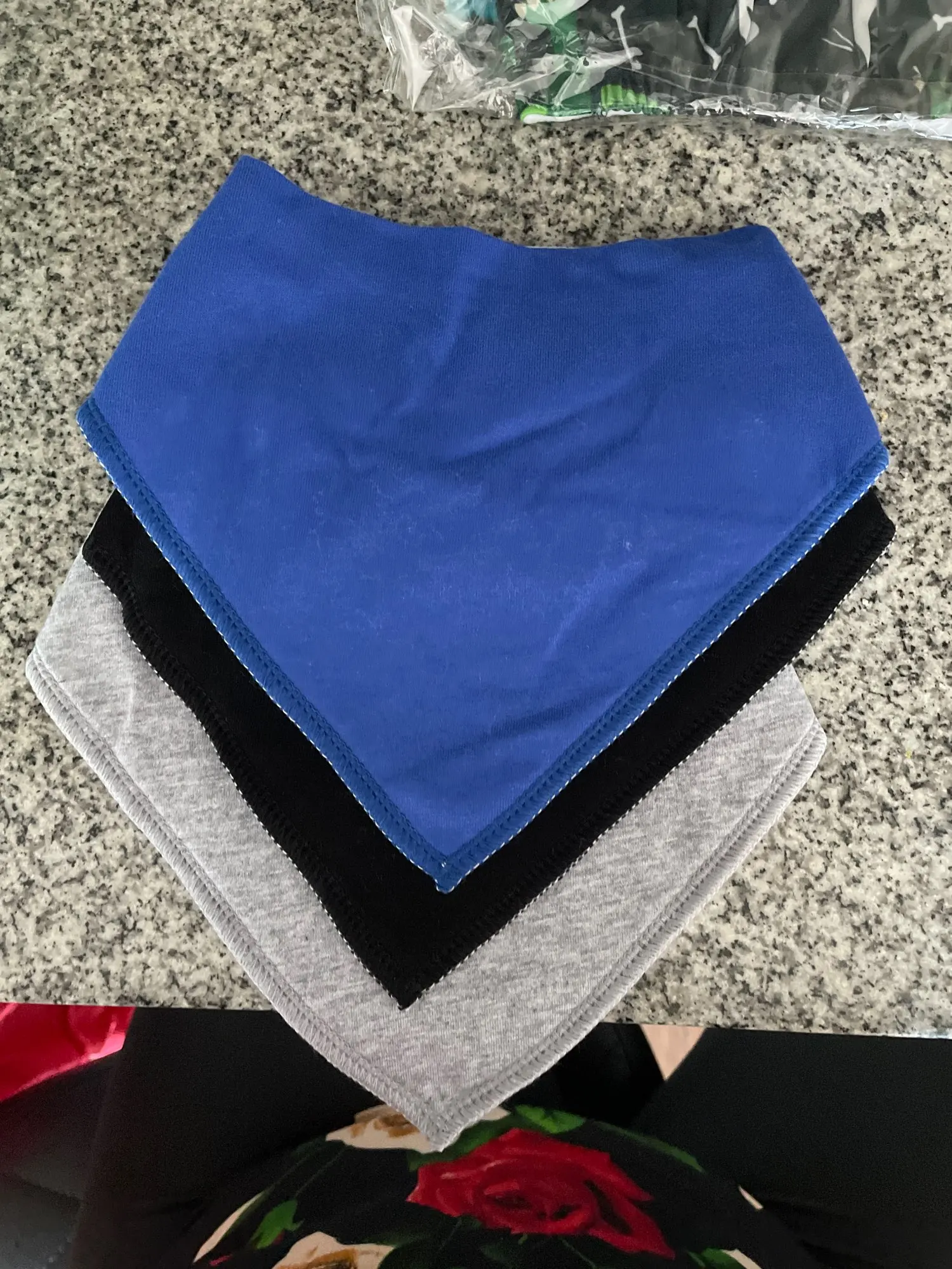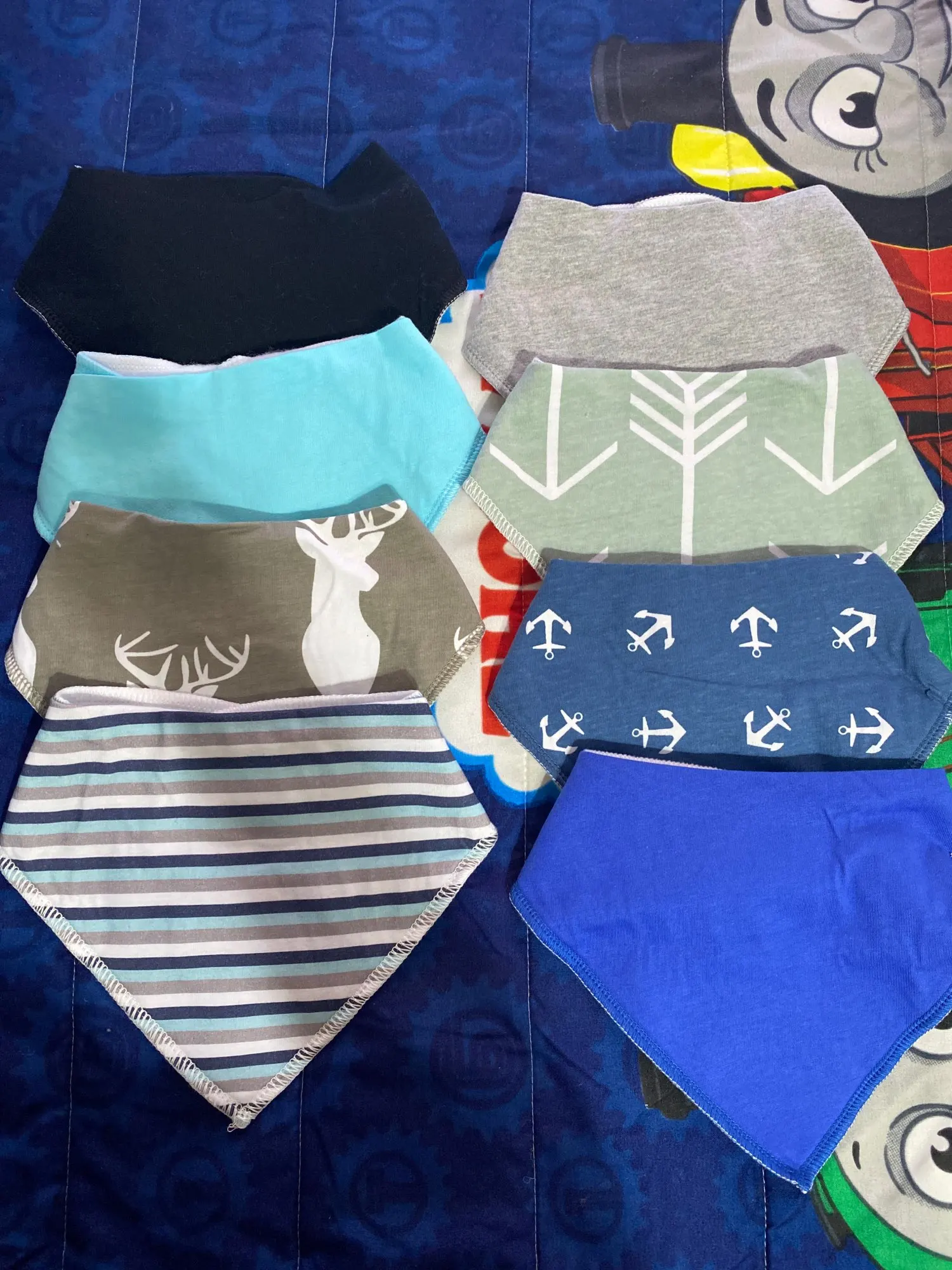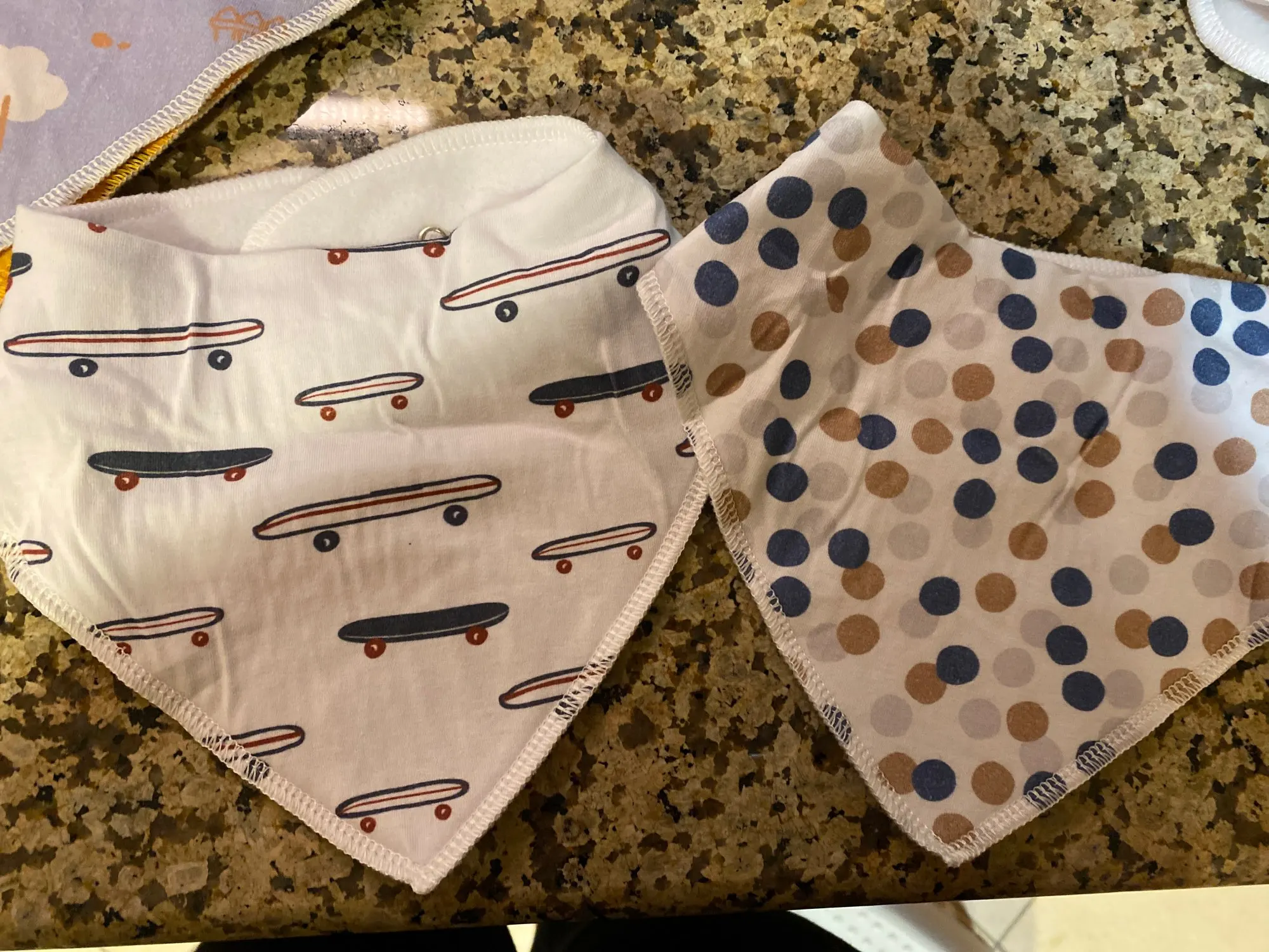 Идеальные нагрудники для нашего ребенка. Не слишком большие, но достаточно большие, они прослужат несколько месяцев для растущего ребенка. Отличный материал. Очень впитывающий материал для прорезывания зубов.