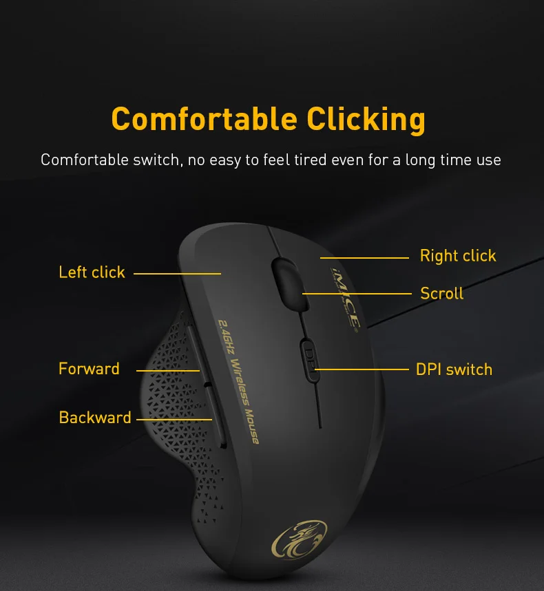 Эргономичная беспроводная мышь, компьютерная мышь для ПК, ноутбука 2,4 ГГц, USB Mini Mause 1600 DPI, 6 кнопок, оптические мыши