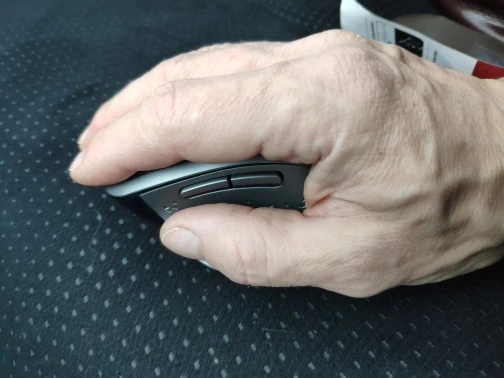 Мышь обыкновенная, китайская. По длине - удобная, не слишком маленькая. По форме - удовлетворительно, рука лежит удобно. Хотя колёсико стоило поместить чуть правее под средний палец, поскольку мизинец и безымянный лежат низко, в специальных ложбинах. боковые кнопки стоило поместить чуть дальше. Вперёд нажимать удобно, а Назад - уже нет. Все кнопки с щелчком, так что мышь не особо тихая. "Засыпает" нормально, не слишком быстро,. просыпается от кнопок, колесо прокрутки не разбудит.