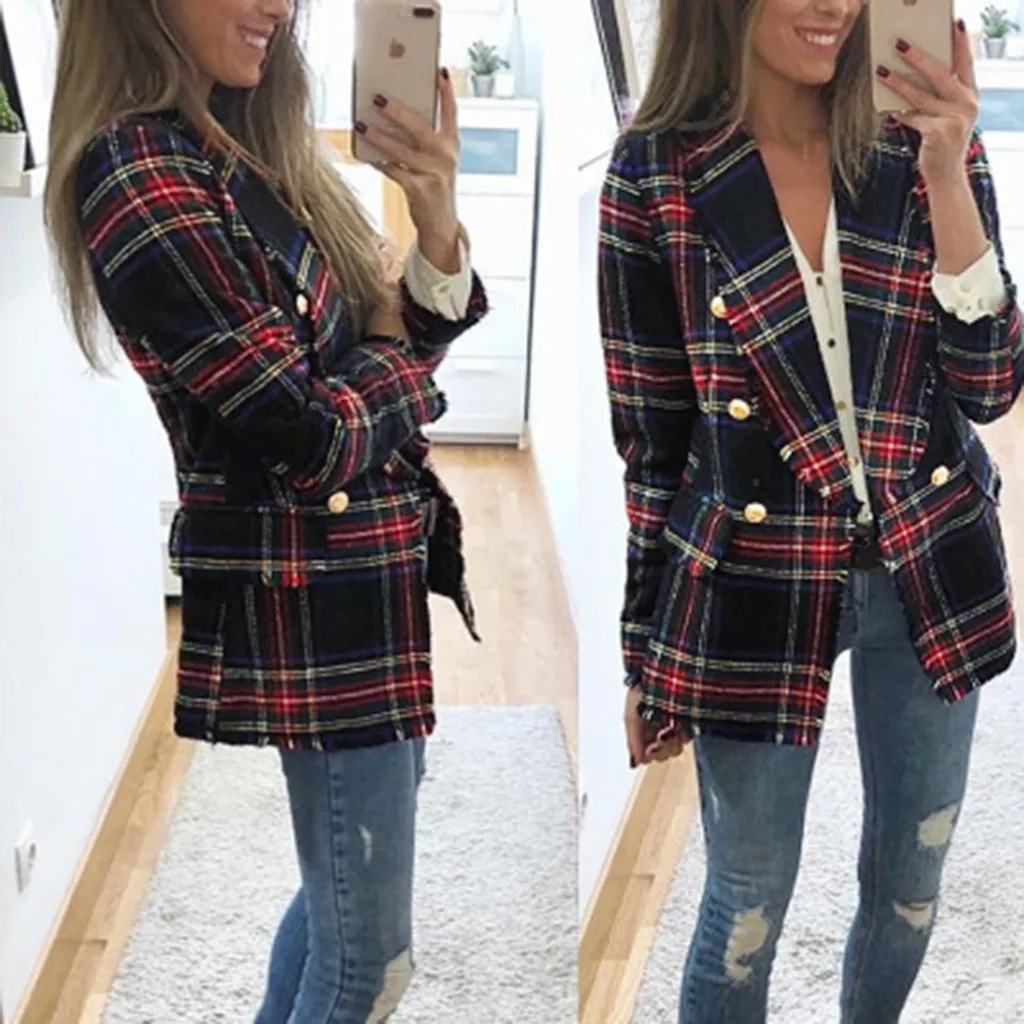 Женская осенне-зимняя клетчатая Двусторонняя одежда с длинными рукавами, пальто-свитер
