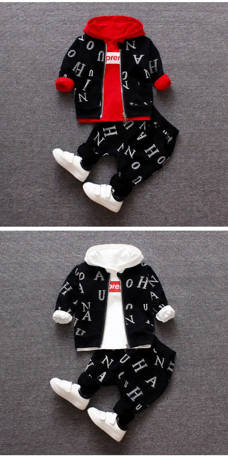 Комплекты одежды для мальчиков, весна-осень, новые детские модные хлопковые повседневные куртки, толстовки, штаны, спортивный костюм из 3 предметов для мальчиков