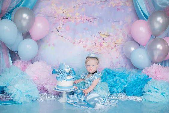 Фон для фотосъемки на 1-й день рождения, воздушный шар, цветы, бела...