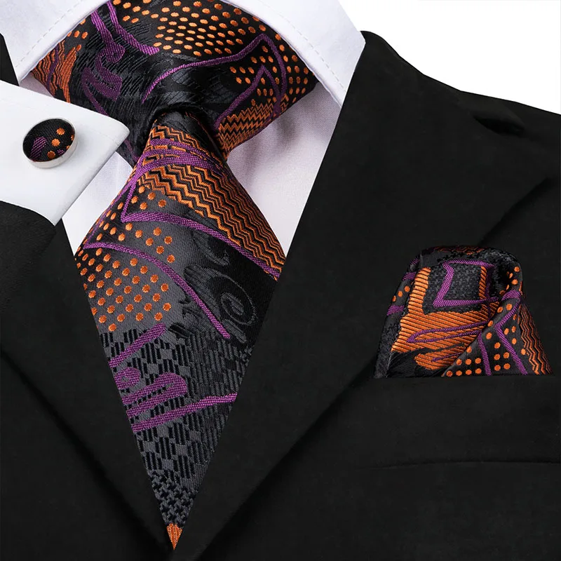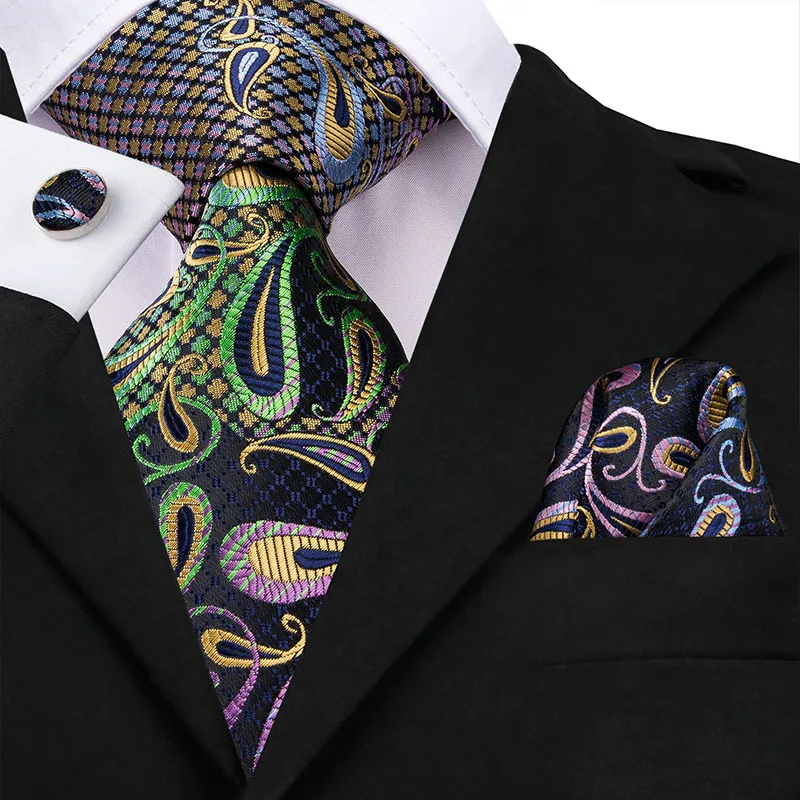 Галстук Hi-Tie, 100% шелк, роскошные мужские галстуки, цветочные черные, золотистые Галстуки, Пейсли, нагрудный платок, запонки, набор для свадьбы, вечеринки