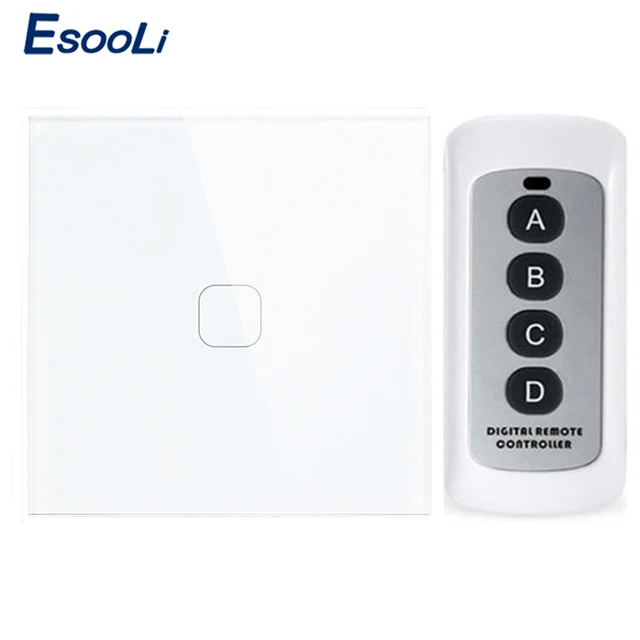 Esooli стандарт ЕС/Великобритания кристальная стеклянная панель 1 gang пульт дистанционного управления настенный сенсорный выключатсветильник умный дом led 220 В