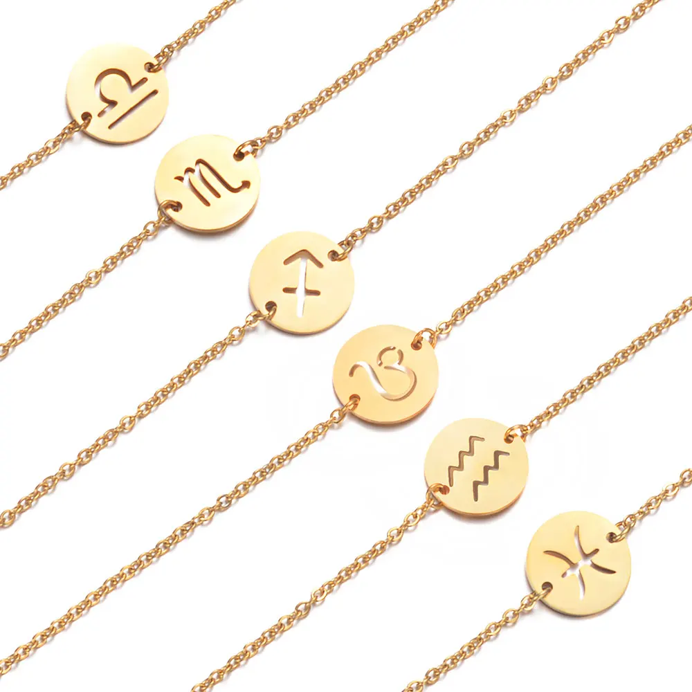 Браслет женский из нержавеющей стали золотого цвета с изображением знаков зодиака, 14,5 + 6 см