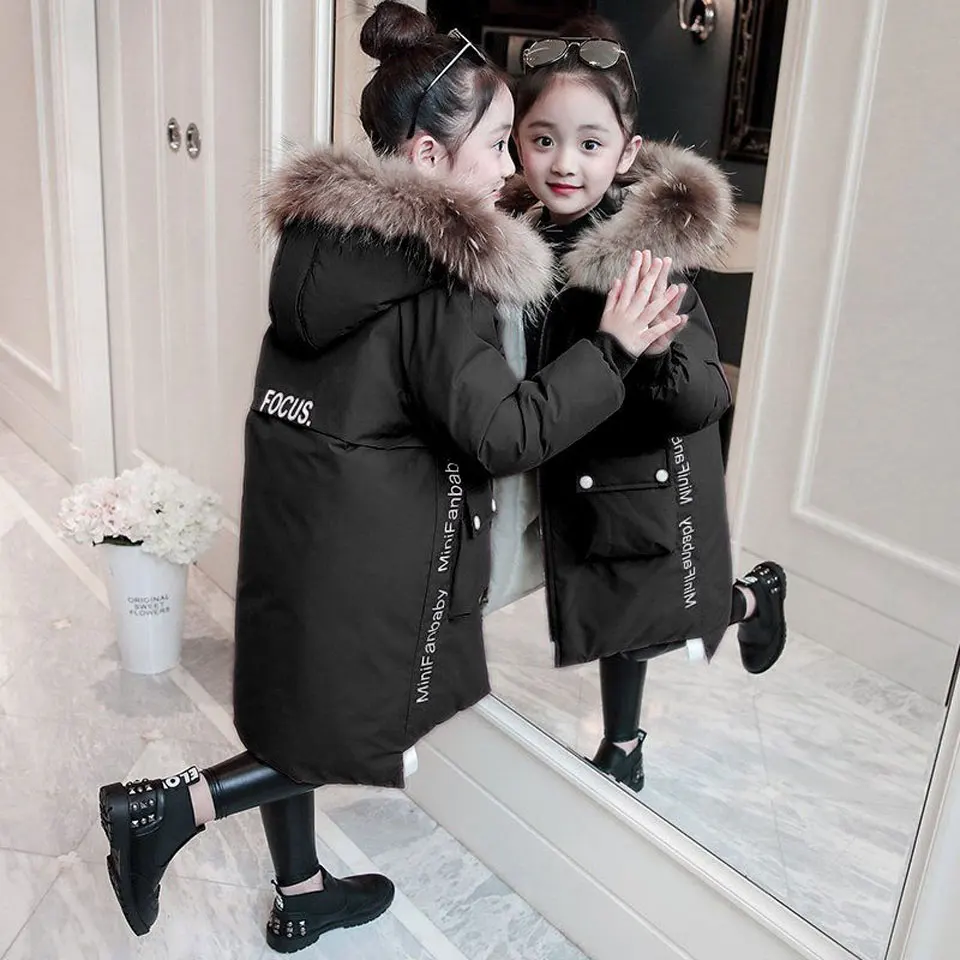 2019 модный детский зимний пуховик Одежда для девочек детская одежда теплая плотная парка длинные пальто с капюшоном и меховым воротником От 4 до 12 лет