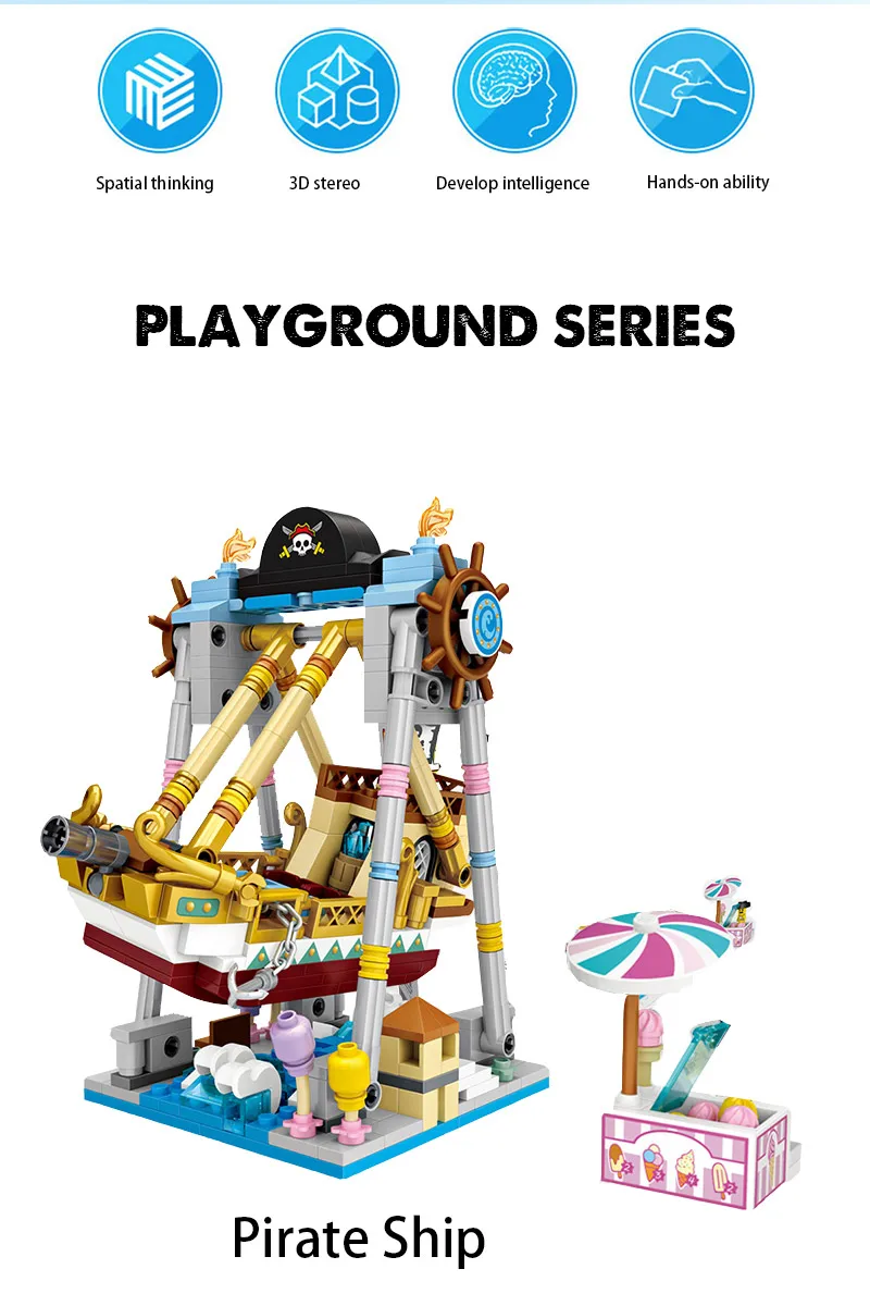 Мини-блоки для парка развлечений, колесо обозрения, карусель, пиратский корабль, игрушки для девочек