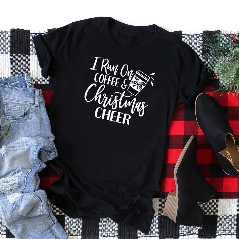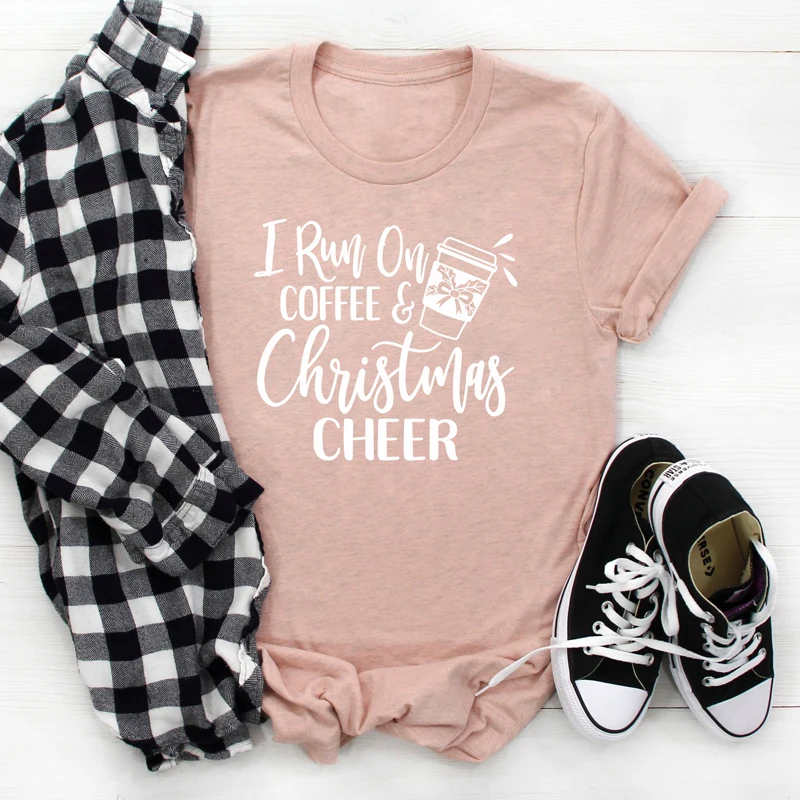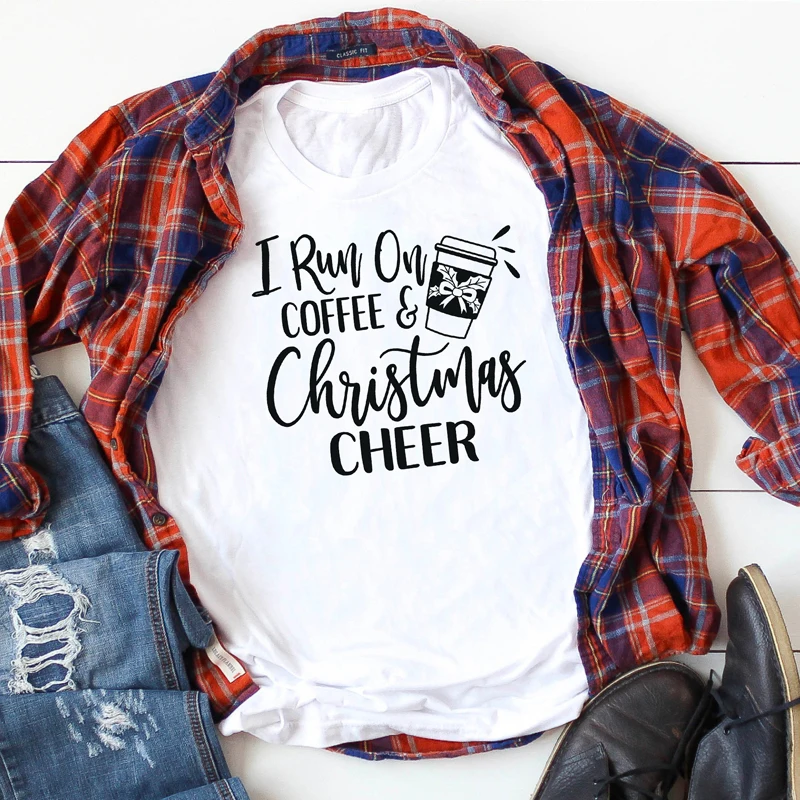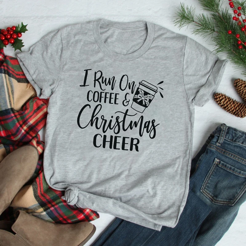 I Run On coffee Christmas Cheer графическая футболка унисекс женская забавная Праздничная Футболка стильная женская футболка с круглым вырезом топ с девизом Прямая поставка