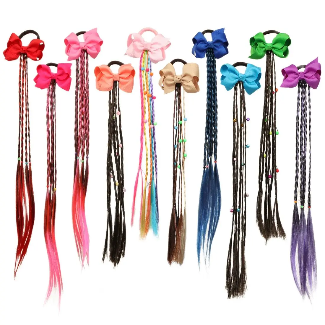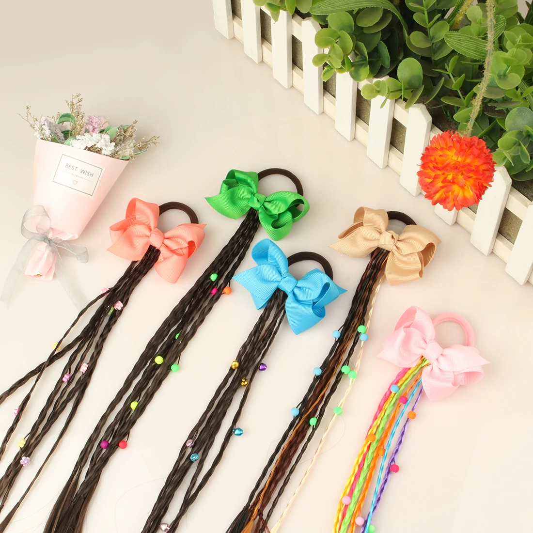 Эластичная повязка для волос с единорогом для девочек, повязка на голову с париком, богемные плетеные резинки для волос для детей, эластичная резинка, аксессуары для волос