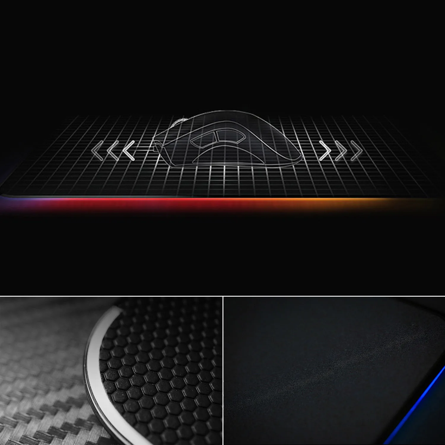 Дизайн с подсветкой с четырех сторон коврика для мыши, идеально сочетается с любой светодиодной мышью и клавиатурой, подчеркнет атмосферу и окажет Вам красочный мир