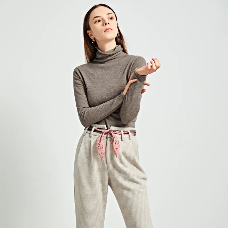 Женский свитер из 100% шерсти с воротником-хомутом и закатанными краями, джемпер с воротником поло на осень и зиму