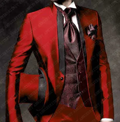 ANNIEBRITNEY2019 модные красные атласные мужские костюмы, итальянские облегающие смокинги, 3 предмета, нежный костюм, Блейзер, брюки, жилет, комплект