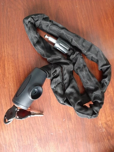 Цепь выглядит хорошо, я надеюсь, что она сопротивляется разрезу ножниц и не украдена мой велосипед. Есть пластиковые детали, кажется, устойчивы, цепь выложена тканью, а внутри все сделано из стали. Груз прибыл примерно через 2 недели, очень быстро и продавец рекомендовал.