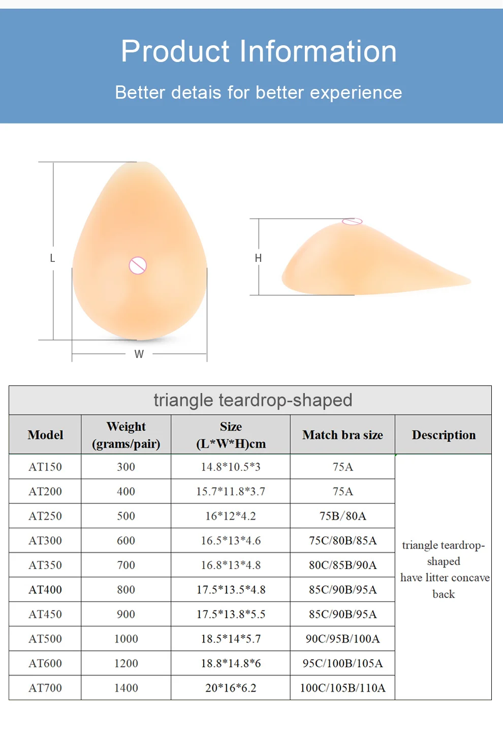 Силиконовая форма для груди ONEFENG AT, в форме треугольной слезы, искусственная грудь 150-700 гшт., искусственная грудь, большая грудь для мастэктомии для женщин