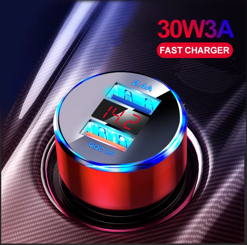 Быстрое зарядное устройство USB 3A со светодиодным дисплеем, автомо...