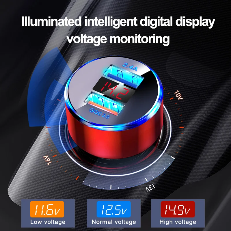 Автомобильное зарядное устройство с двойным USB QC 3,0, светодиодны...